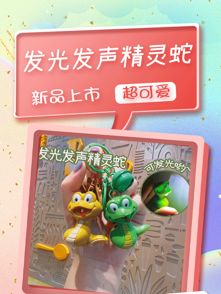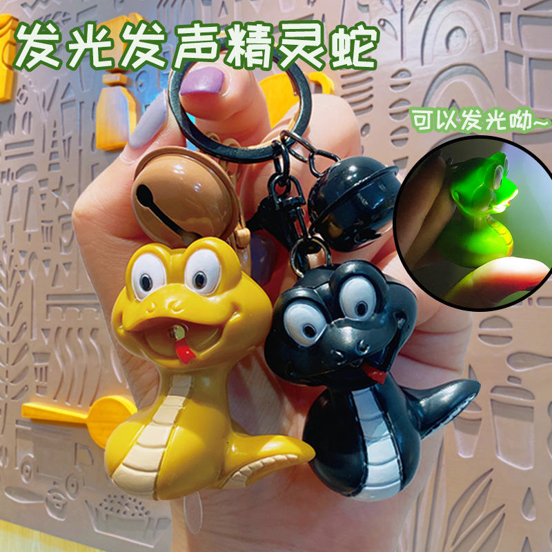 创意发光发声精灵蛇玩具钥匙扣背包饰品挂饰钥匙链批发小礼品公仔