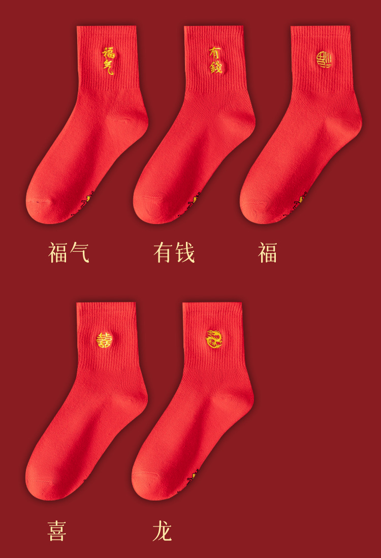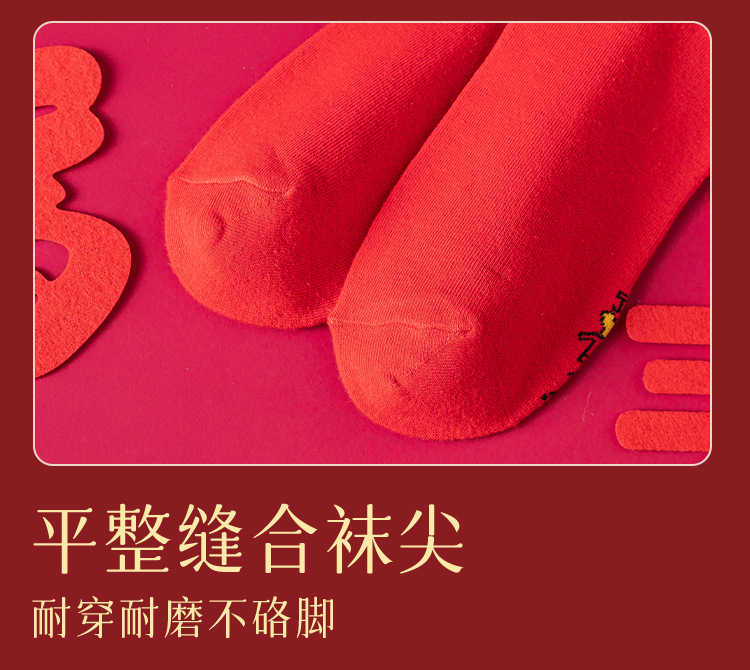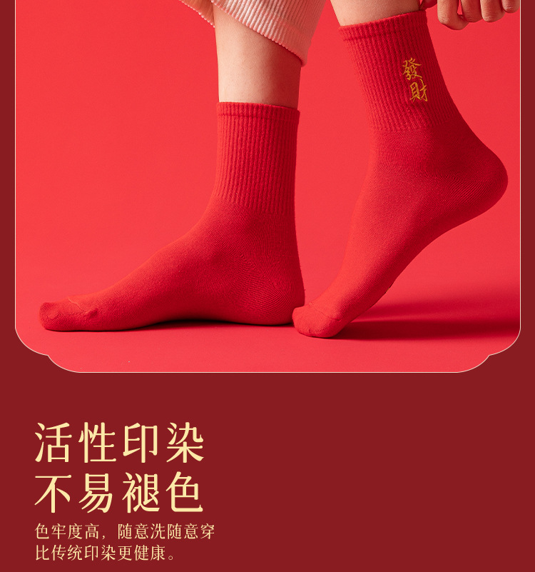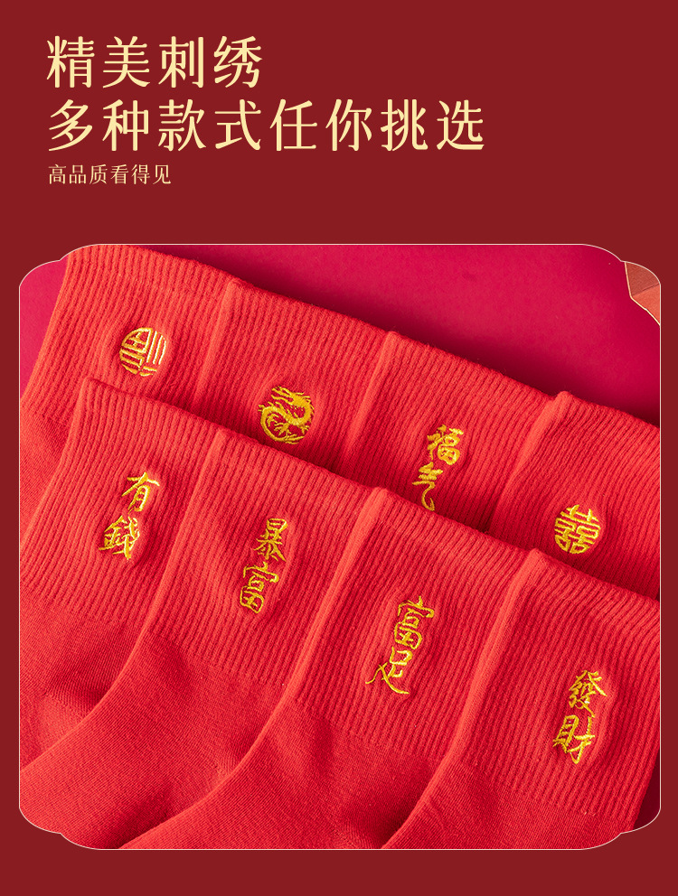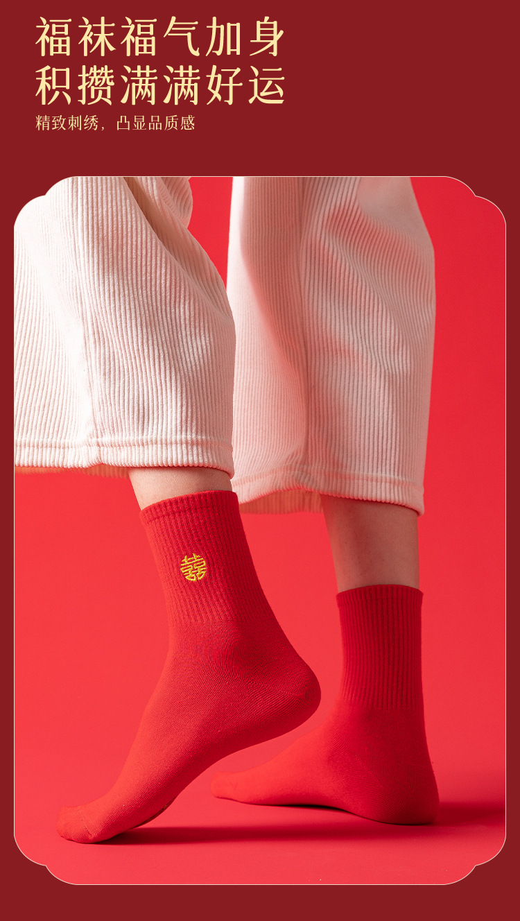 红袜子结婚情侣一对喜子刺绣中筒袜新婚大红色中筒本命年龙年福袜
