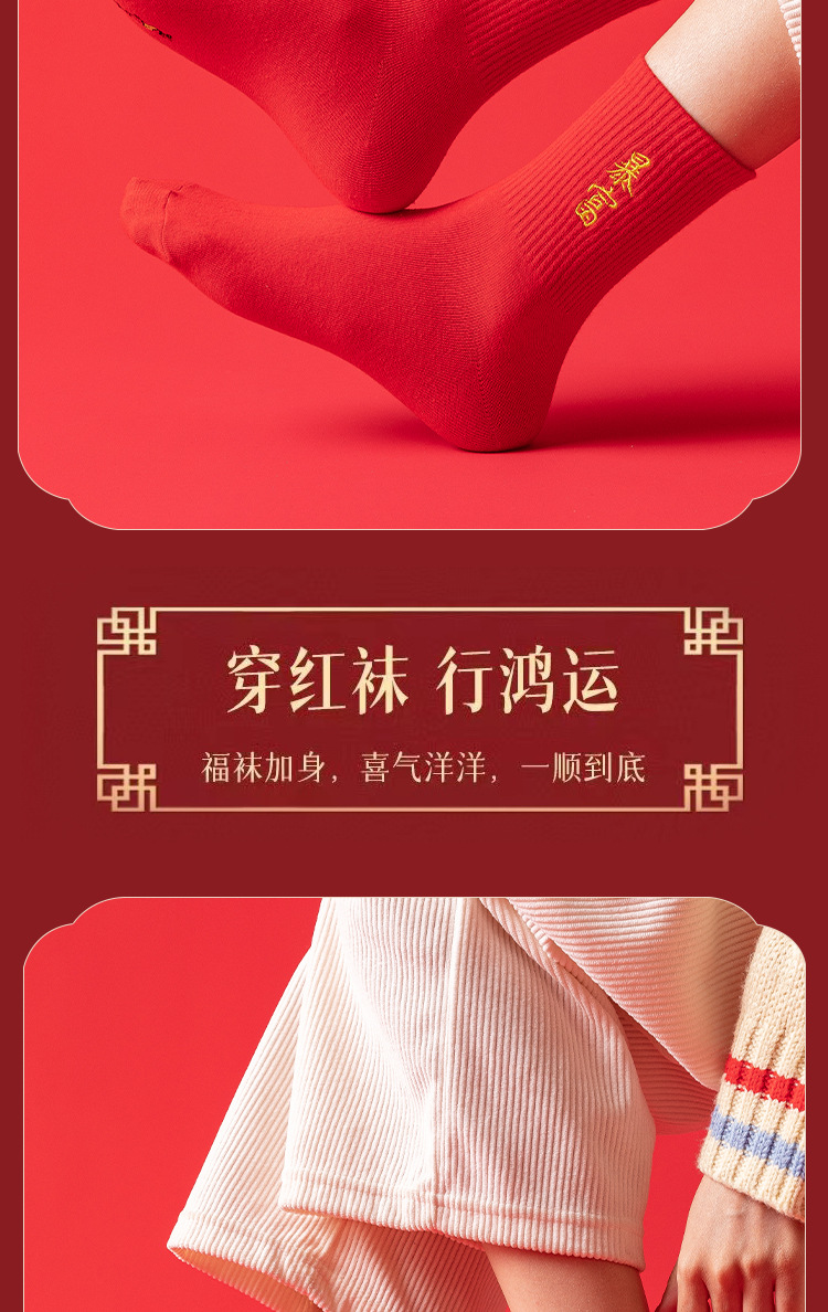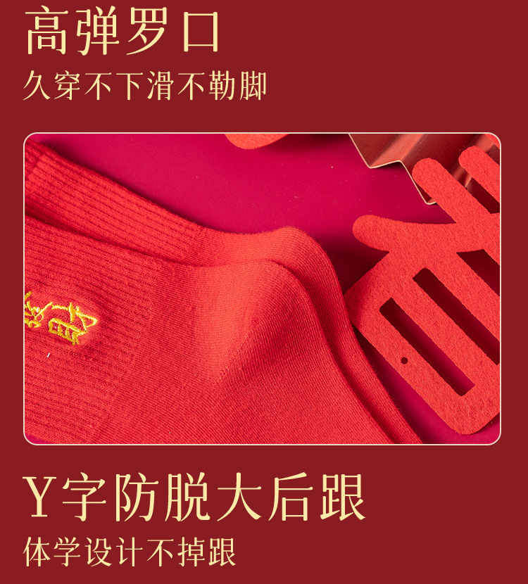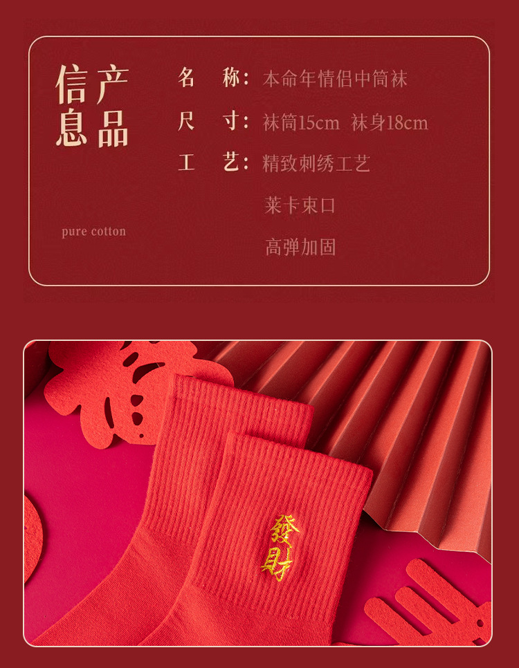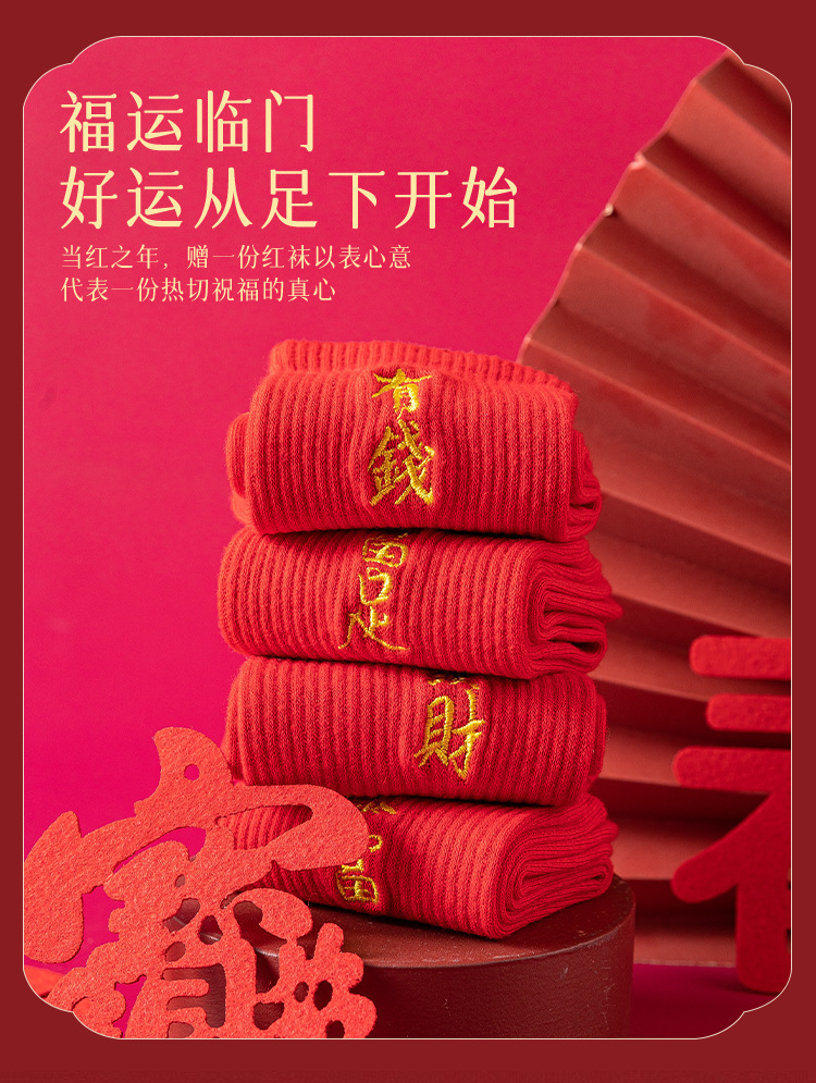 红袜子结婚情侣一对喜子刺绣中筒袜新婚大红色中筒本命年龙年福袜