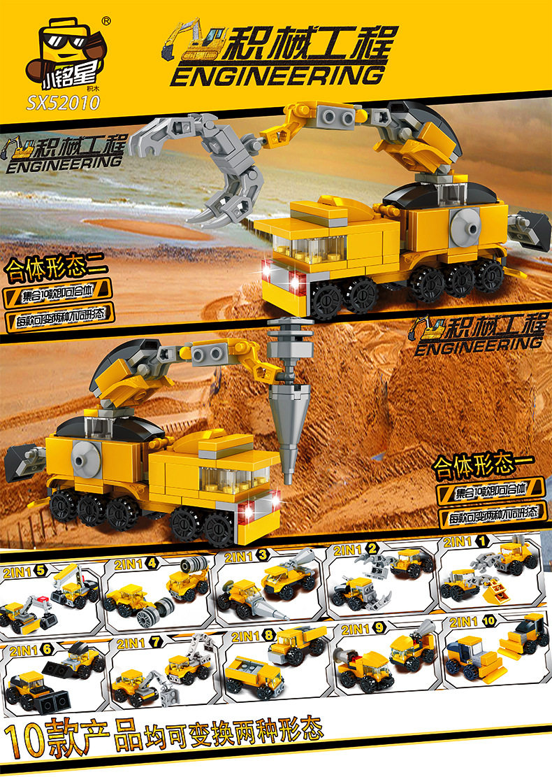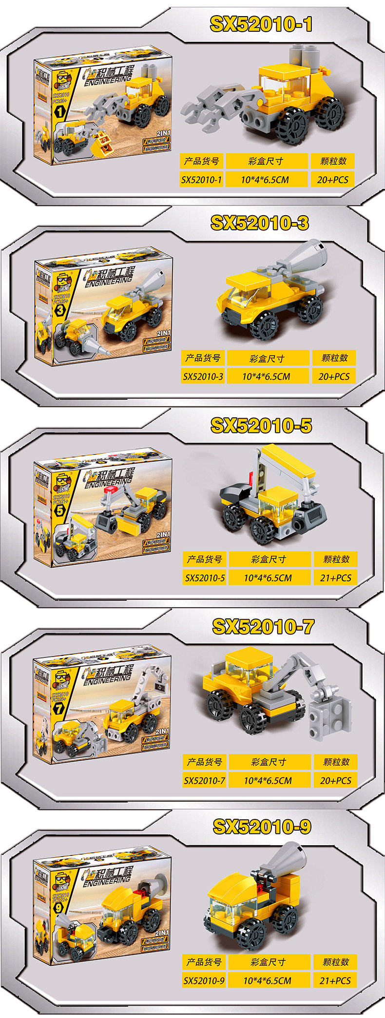 儿童玩具批拼装工程车小颗粒积木套装地摊玩具幼儿园培训机构礼物