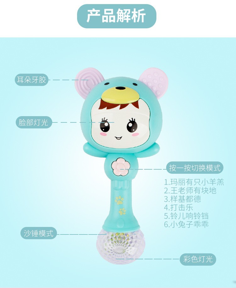 摇铃安抚婴儿磨牙玩具早教故事机婴儿玩具0-3牙胶手摇铃 礼品批发