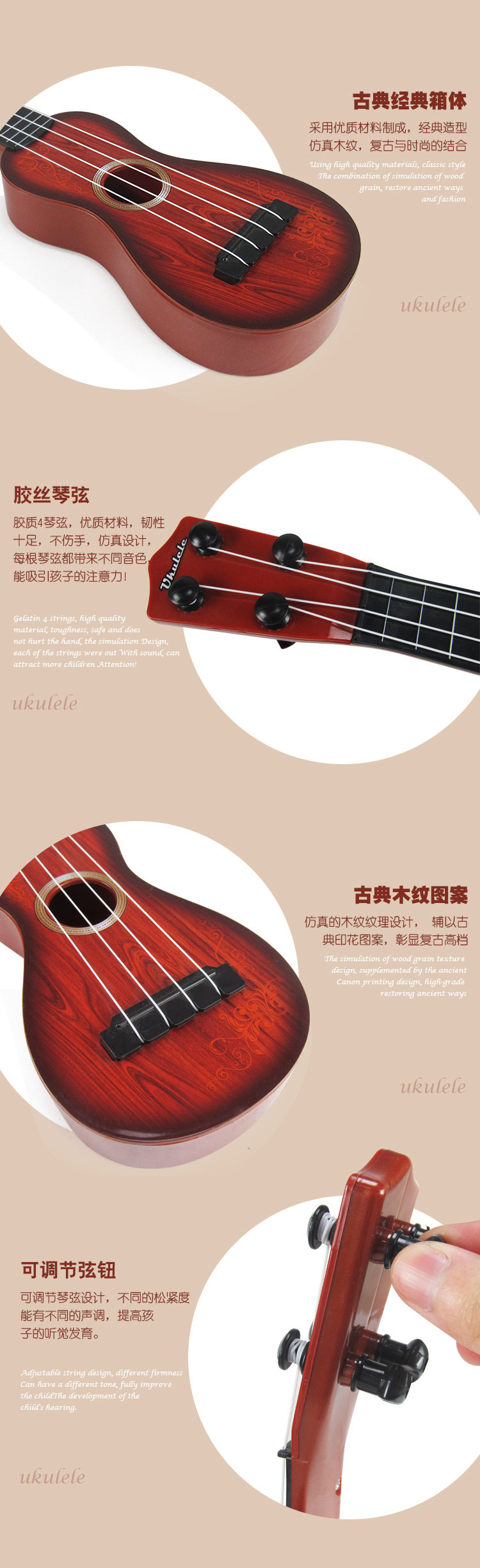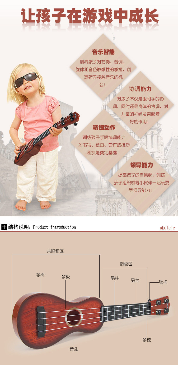 地摊热卖可弹奏吉他玩具卡通尤克里里儿童乐器小礼品益智玩具批发