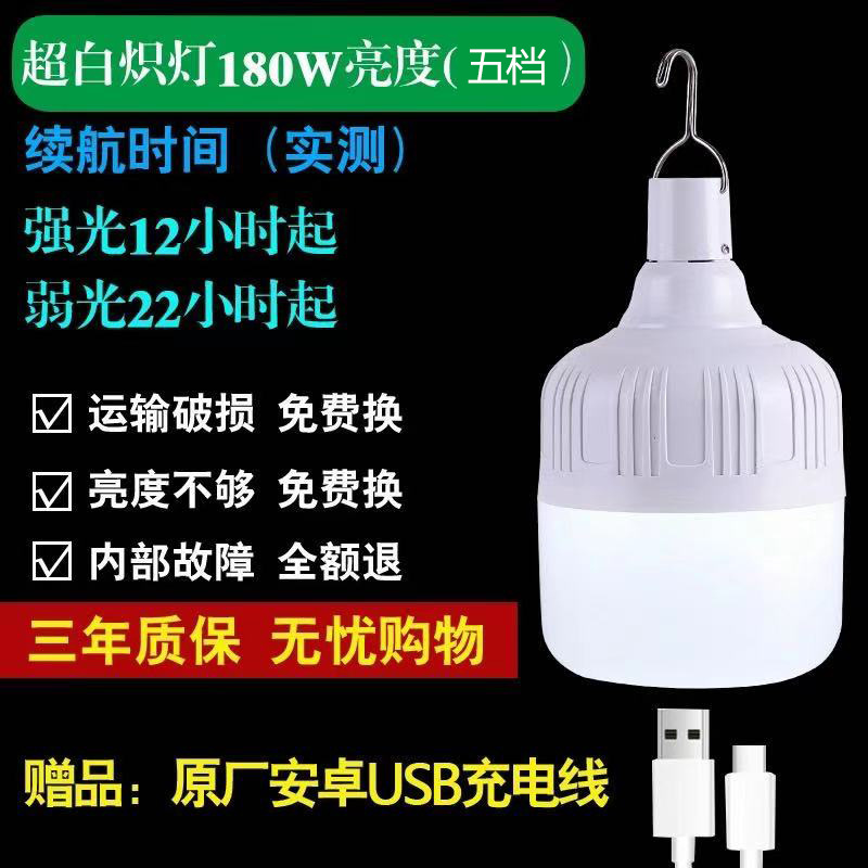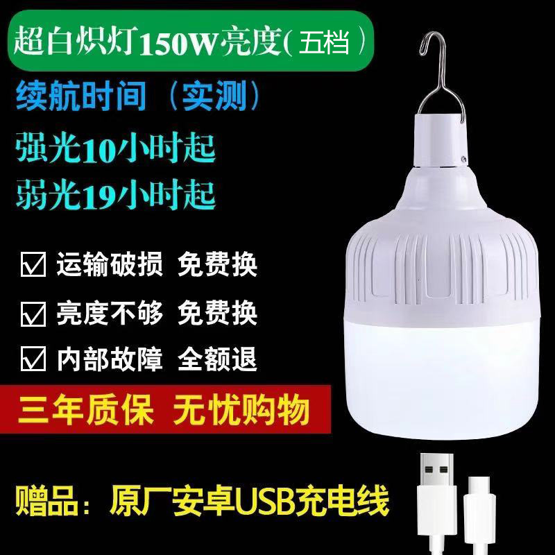 LED灯泡充电式停电应急无线夜市摆摊野外露营充电灯泡超亮照明
