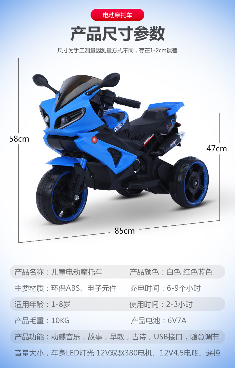 儿童电动摩托车三轮车男女孩充电遥控宝宝小孩童车可坐人电瓶警车