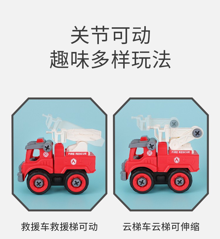 组装拼装消防车儿童拧螺丝刀螺母拆装工程车组合玩具地摊玩具批发