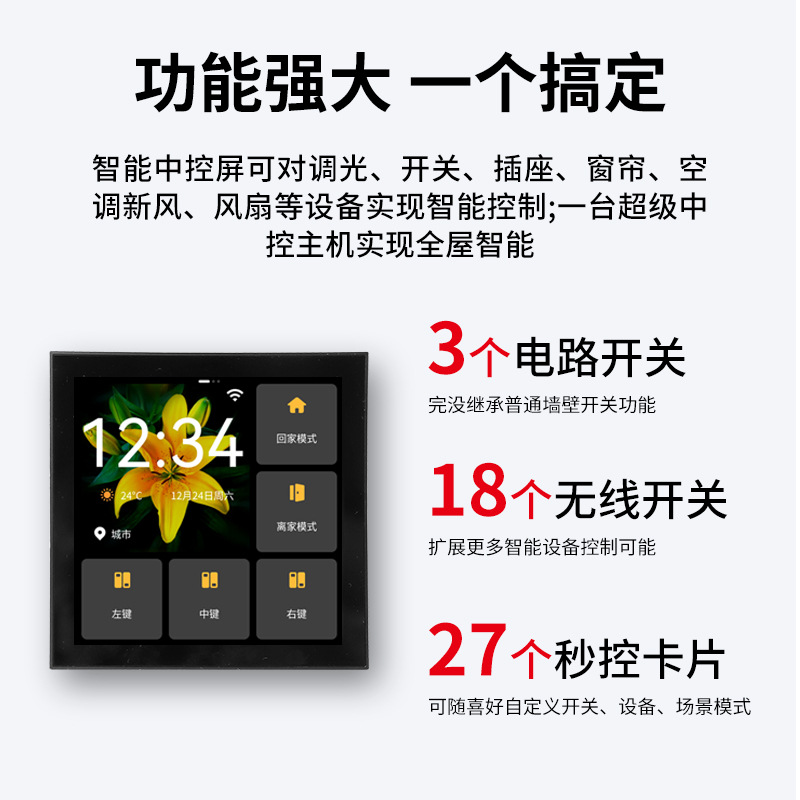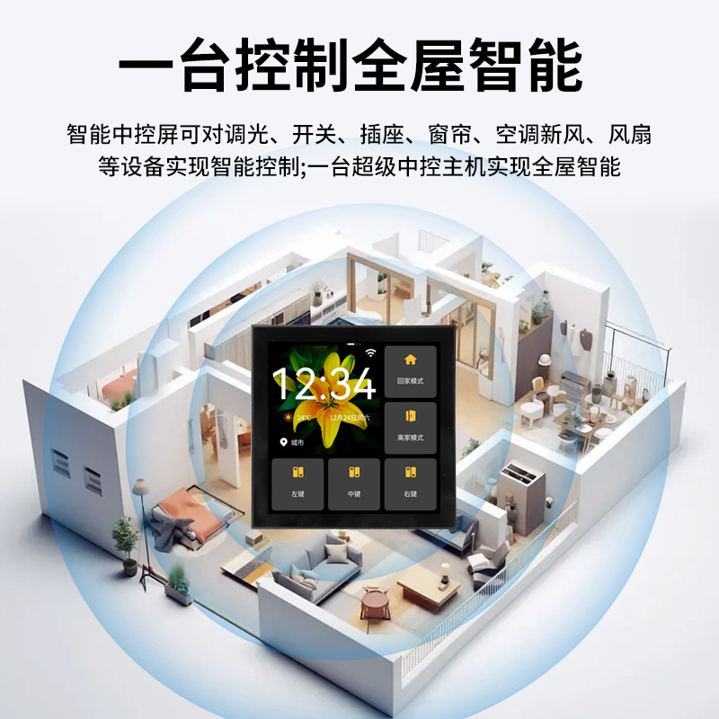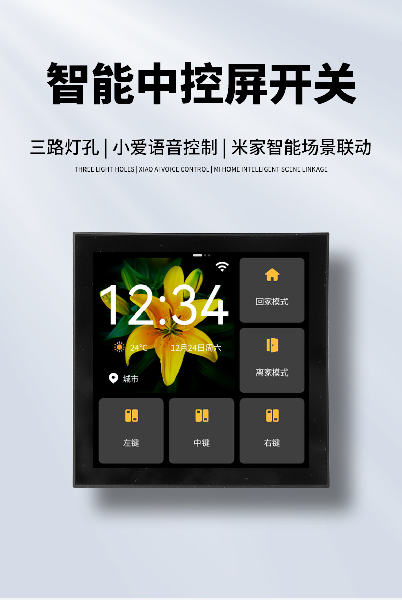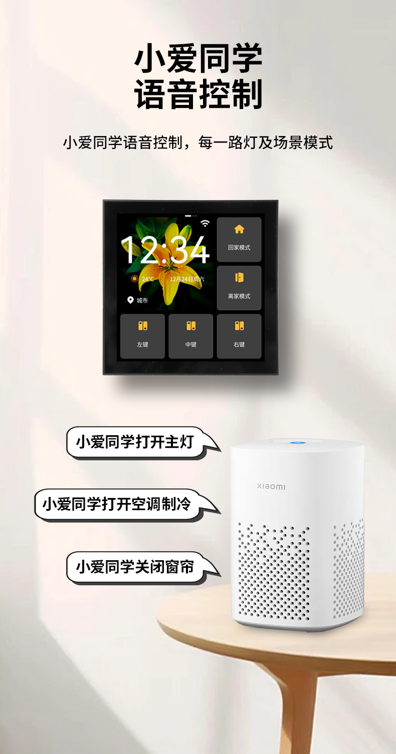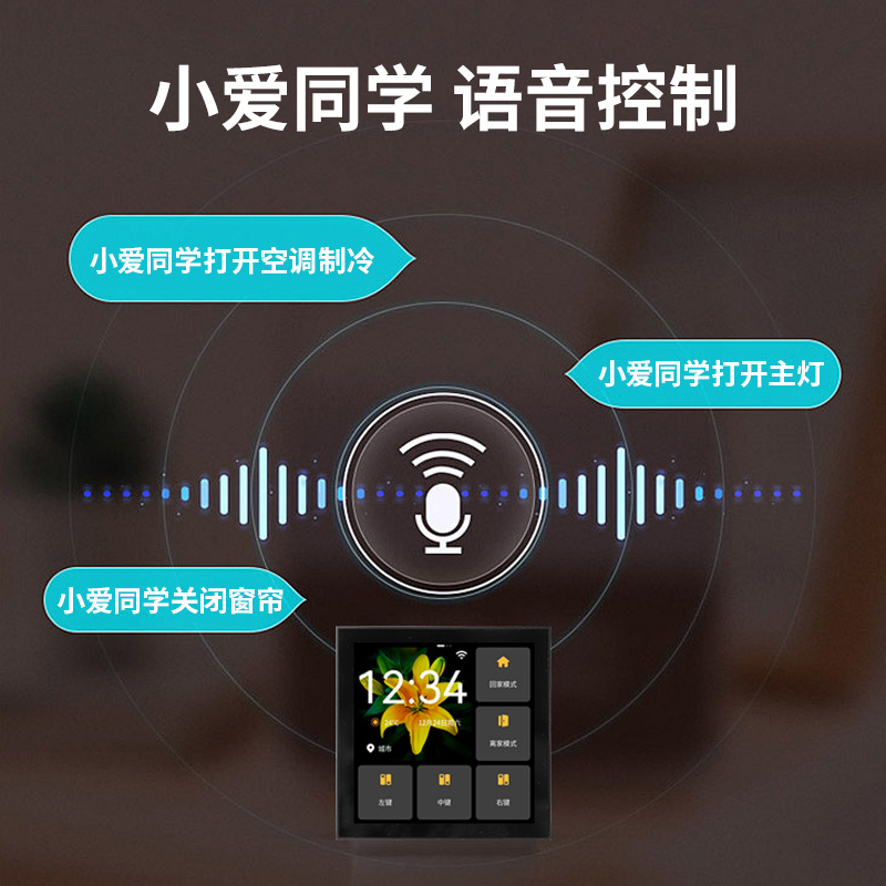米家智能中控屏家庭智慧屏接入米家APP自带三路灯控预设场景联动