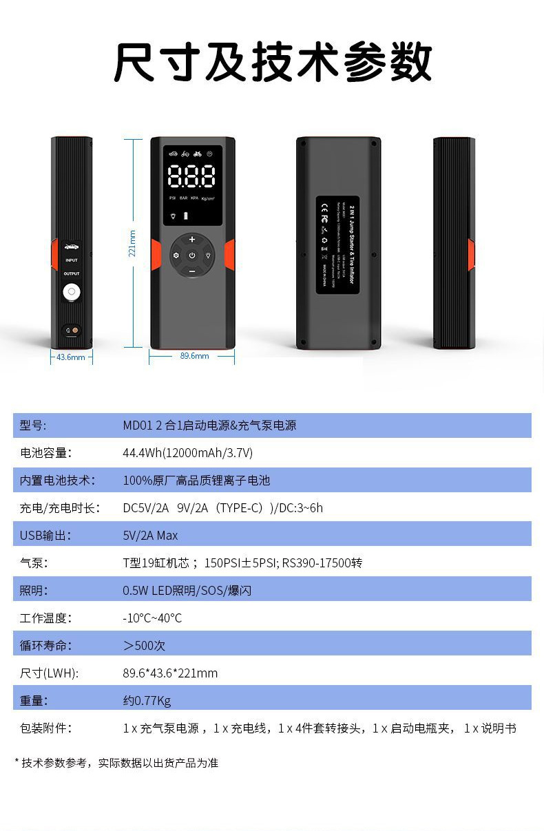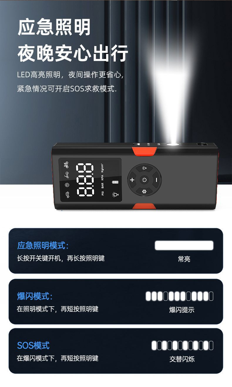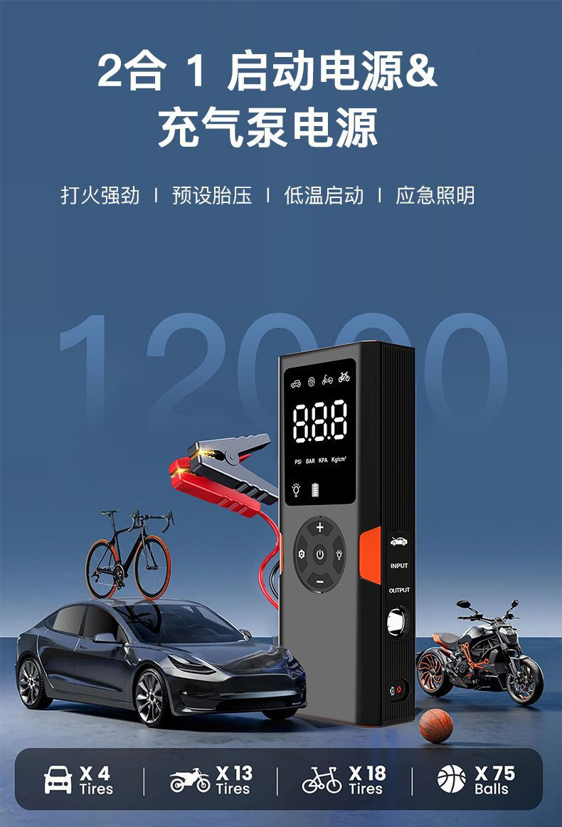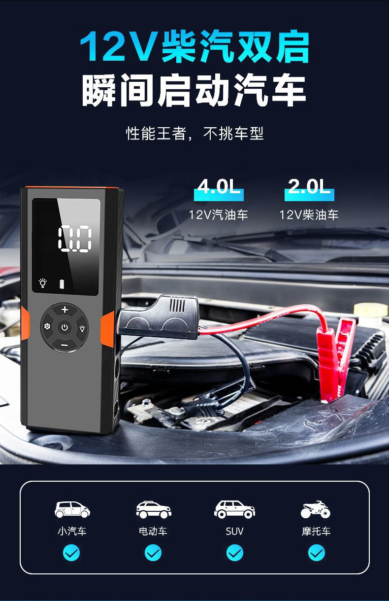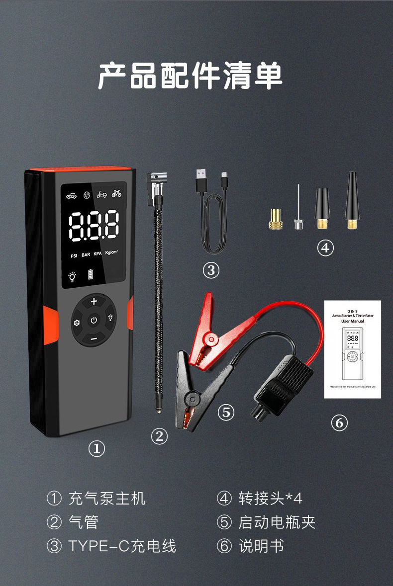 搭电充气一体机便携式搭电宝充气泵多功能便携电瓶充电打火启动器