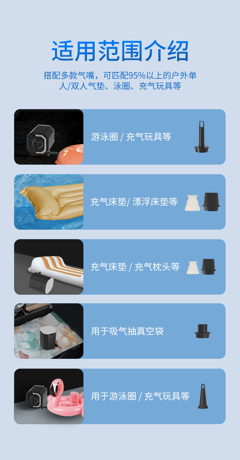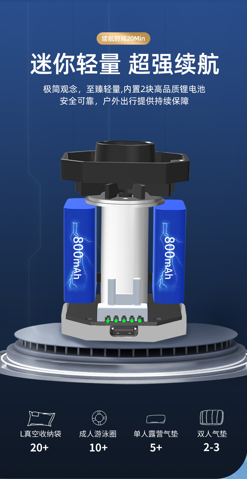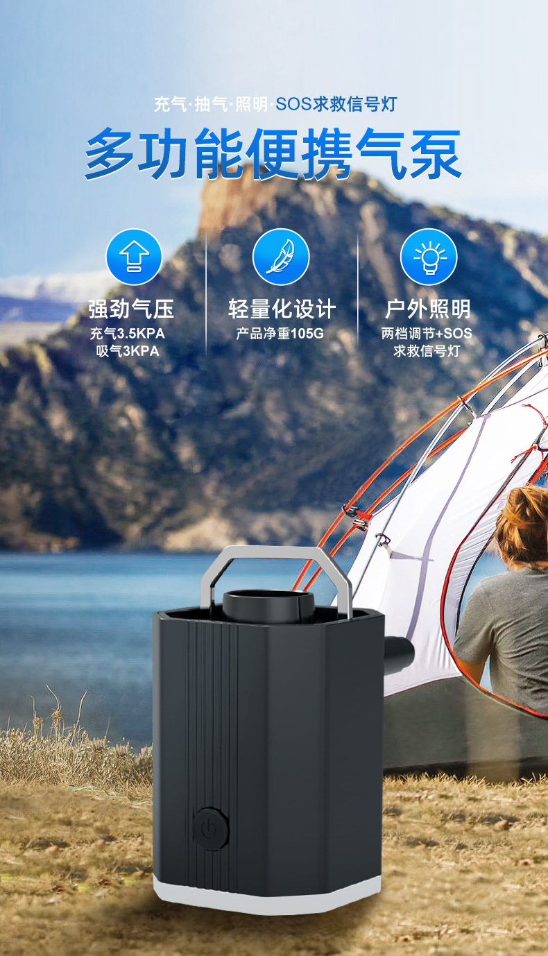 便携式户外充气泵迷你抽吹两用电动充气泵泳圈沙发床垫无线充气泵