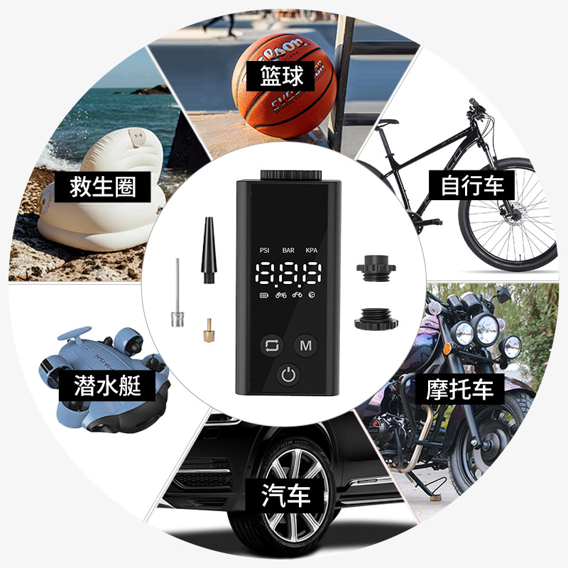 智能胎压检测迷你自行车打气泵便携式充气泵篮球足球排球泳圈充气