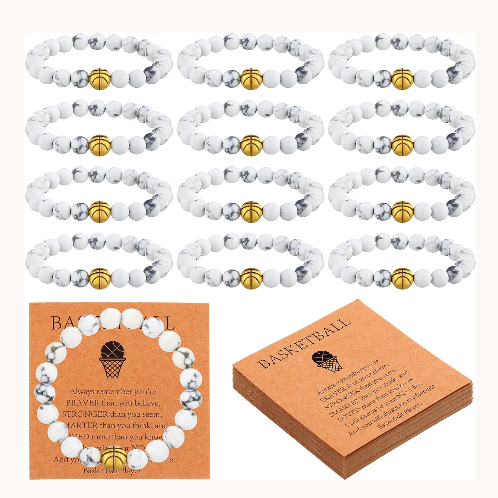 天然松石串珠弹力情侣手链合金足球啦啦队手链亚马逊时尚流行饰品