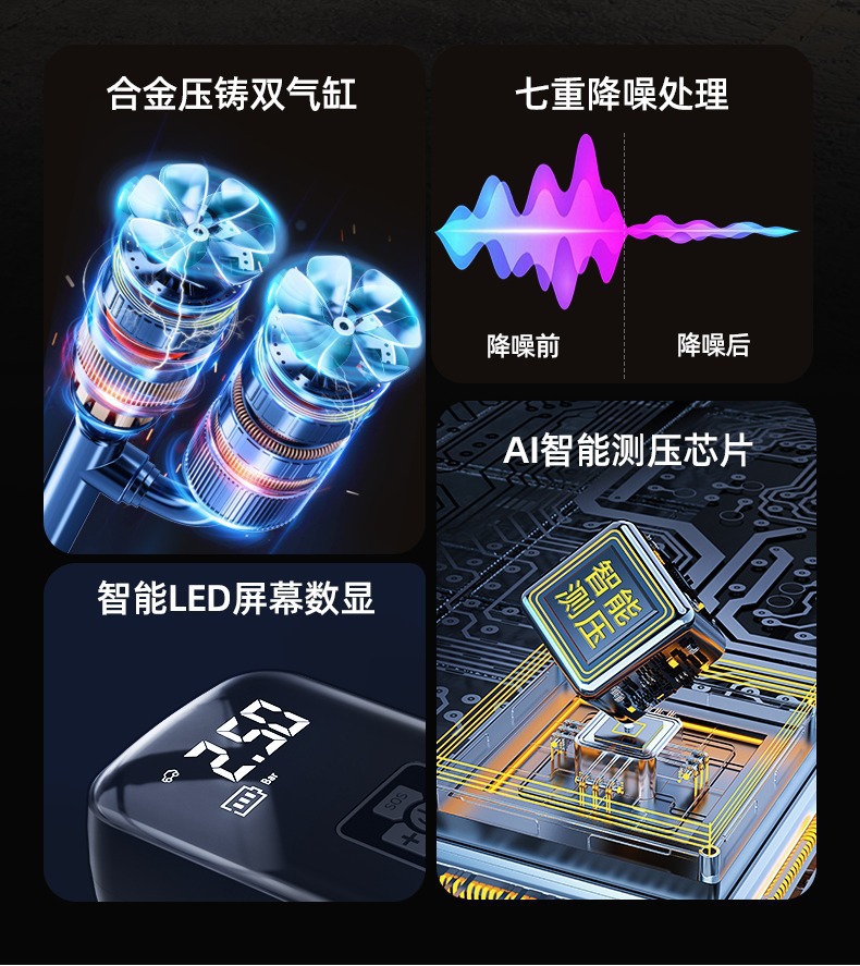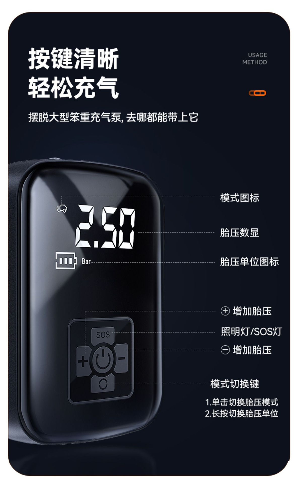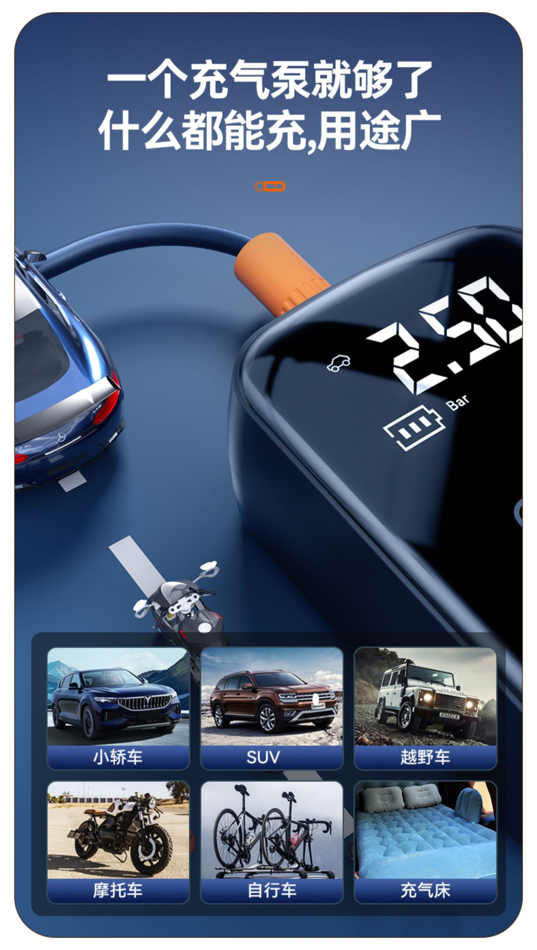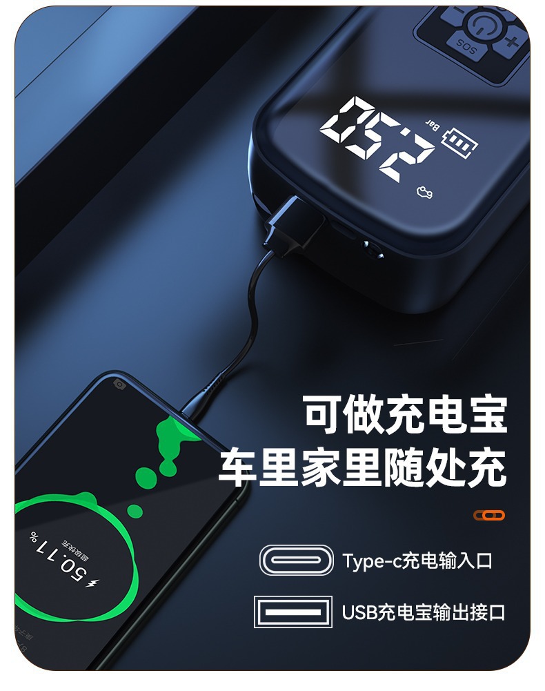 车载无线充气泵 汽车便携式打气泵 电动小轿车用轮胎打气筒冲充气