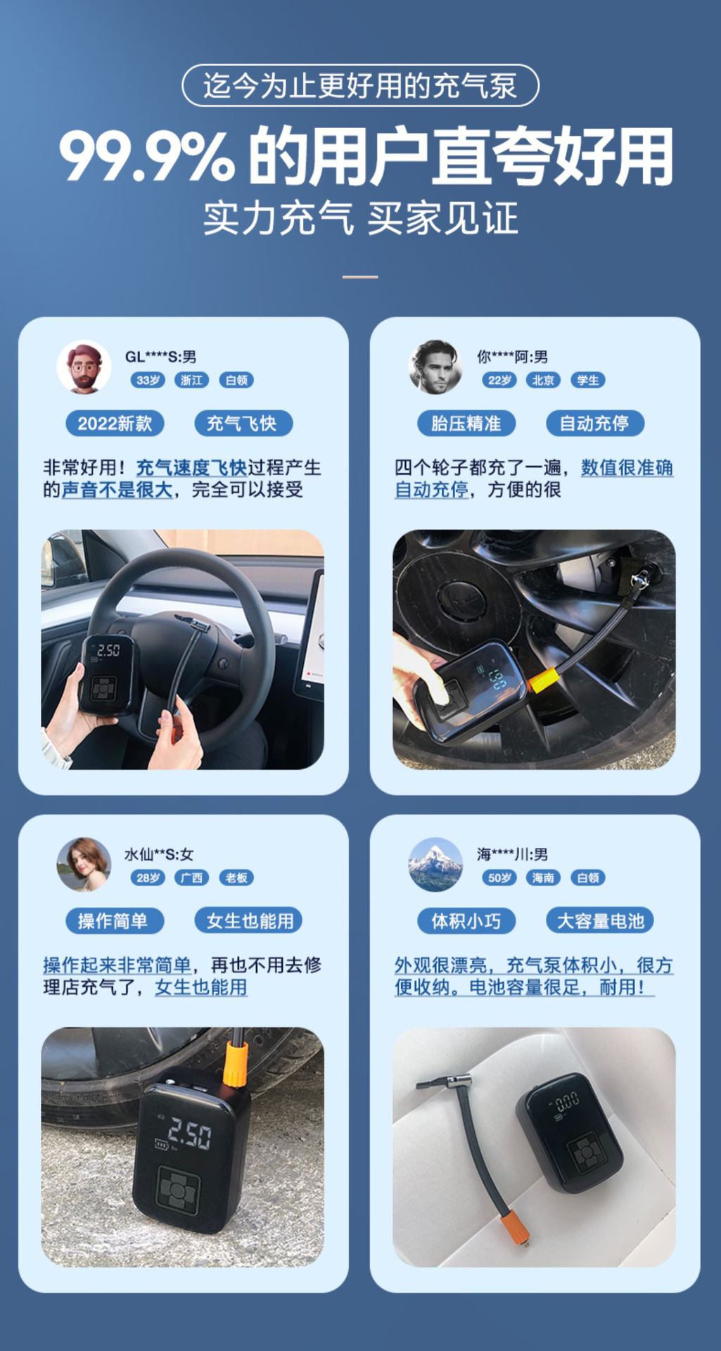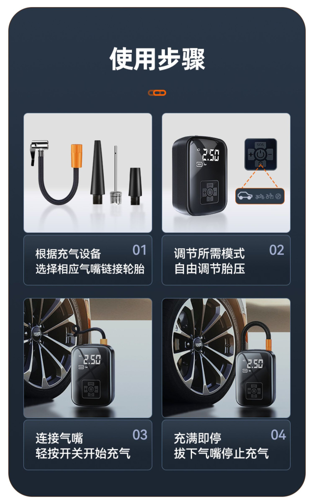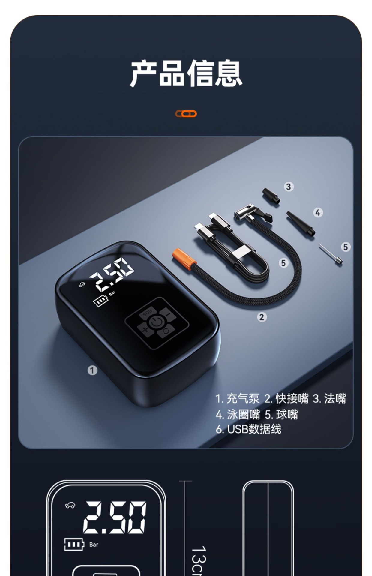 车载无线充气泵 汽车便携式打气泵 电动小轿车用轮胎打气筒冲充气