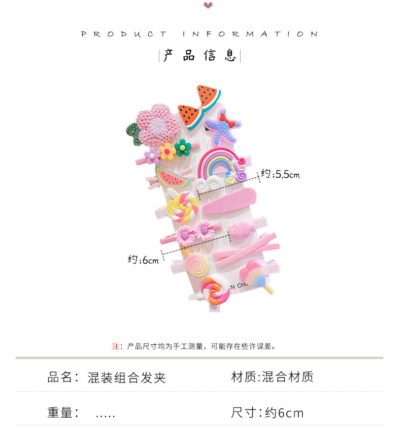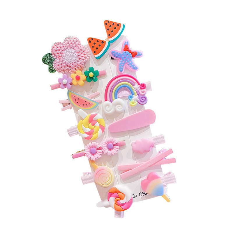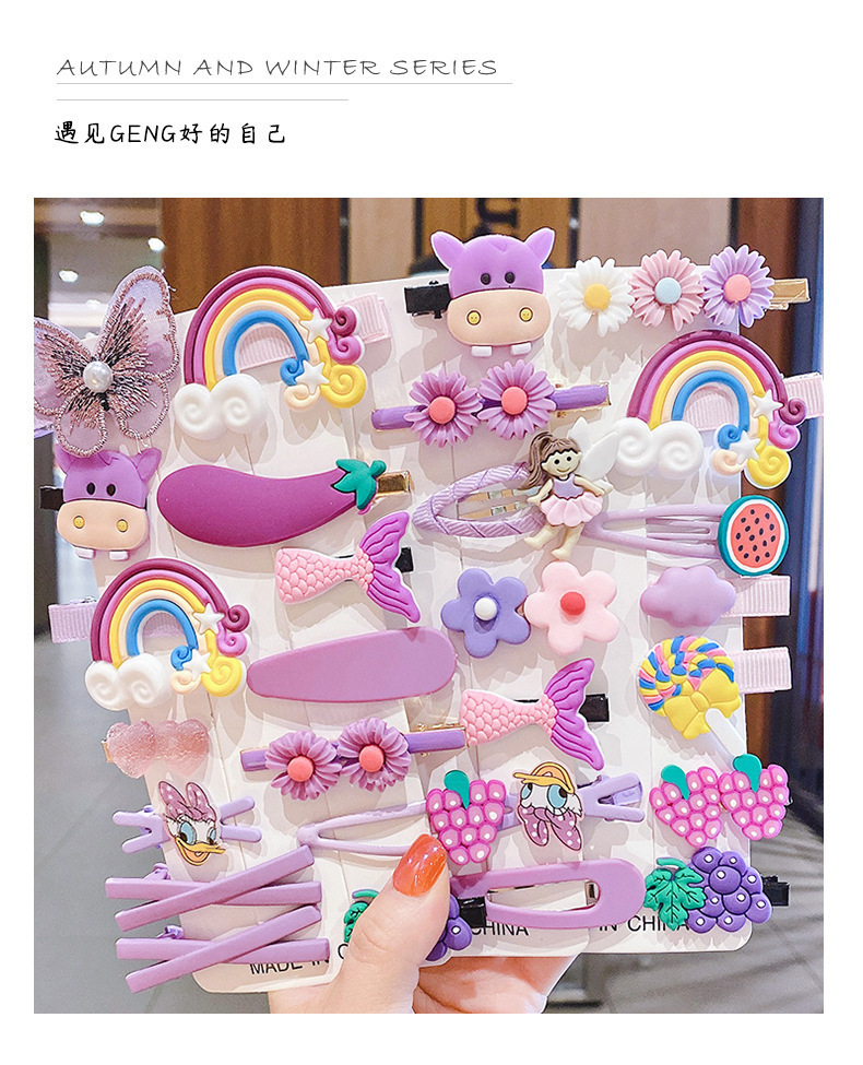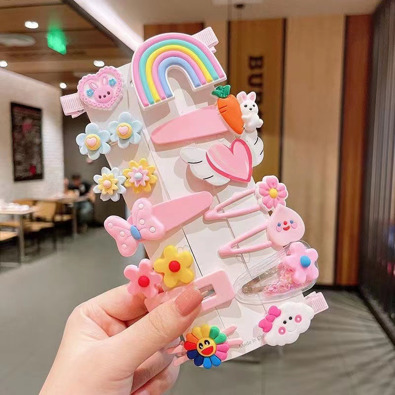 新款14件套网红女童发夹可爱边夹卡通发卡甜美风少女卡通头饰批发