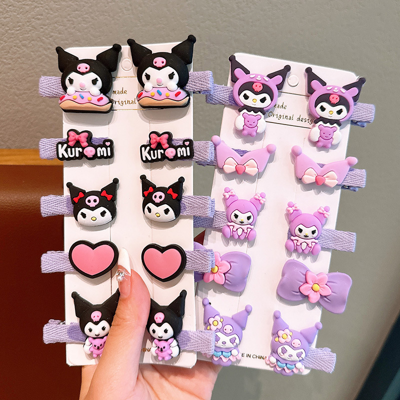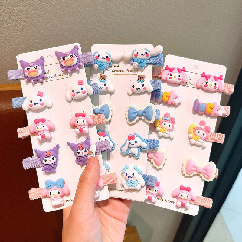 库洛米儿童发夹10件套全包布不伤发发卡宝宝可爱卡通对夹刘海夹子