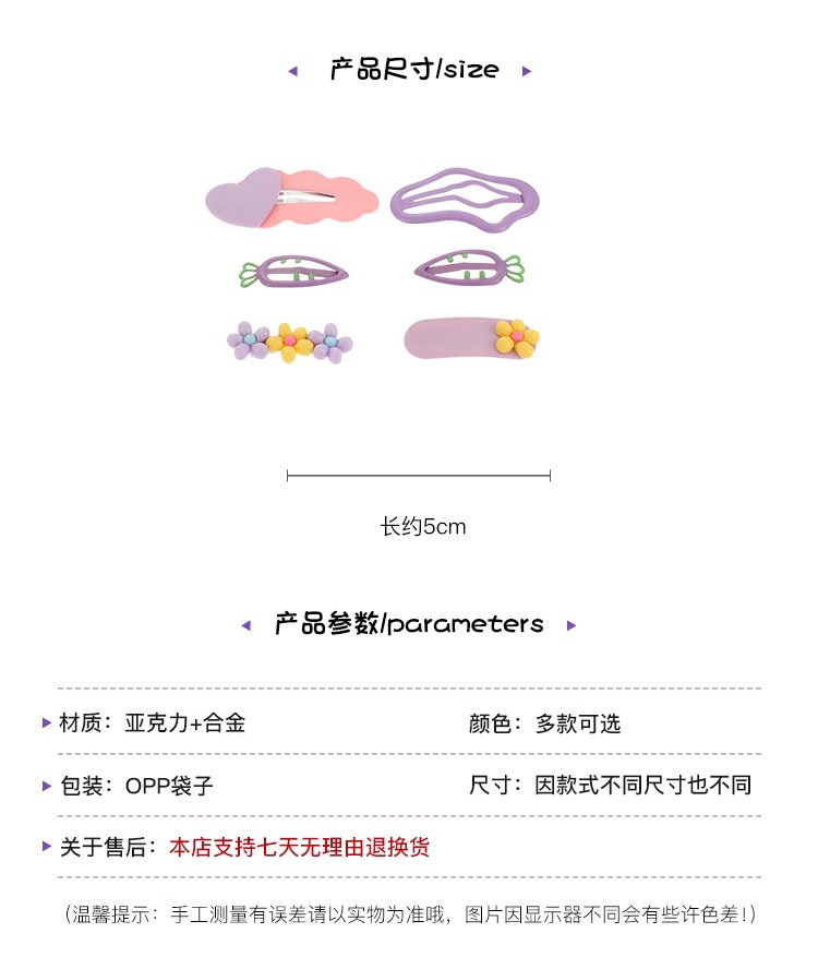 儿童糖果色云朵发夹花朵碎发夹BB夹女童可爱侧边后脑勺发卡小女孩