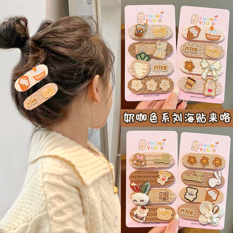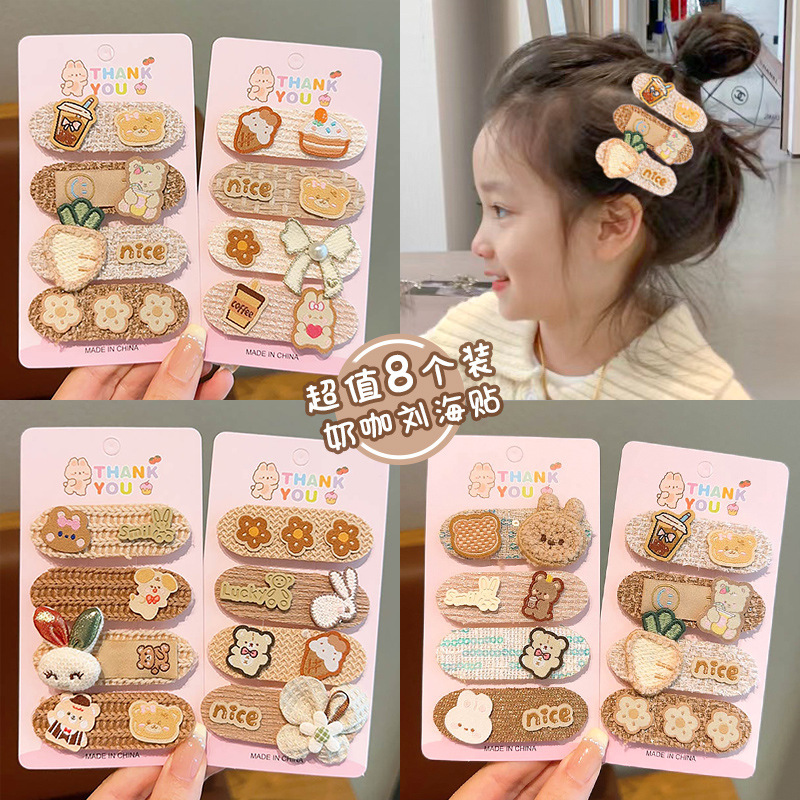 碎发整理神器儿童魔术贴奶咖色发卡秋冬女童宝宝后脑勺可爱刘海贴