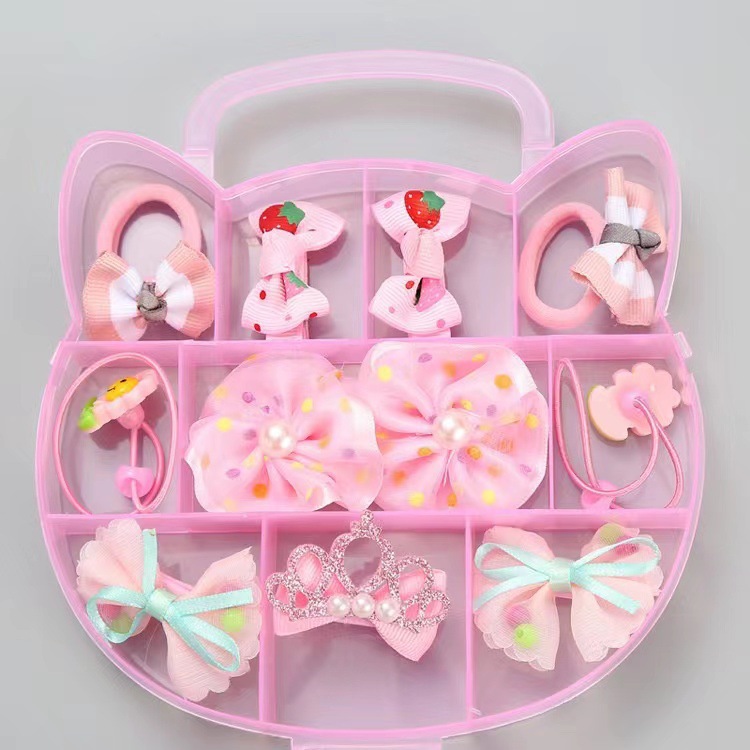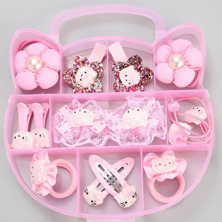 儿童新款KT猫发饰礼盒套装女童宝宝布艺蝴蝶结发夹小女孩发圈头绳
