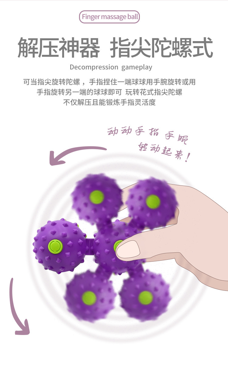 抖音同款3d萝卜球手指按摩球指尖旋转陀螺连体按摩球解压网红玩具