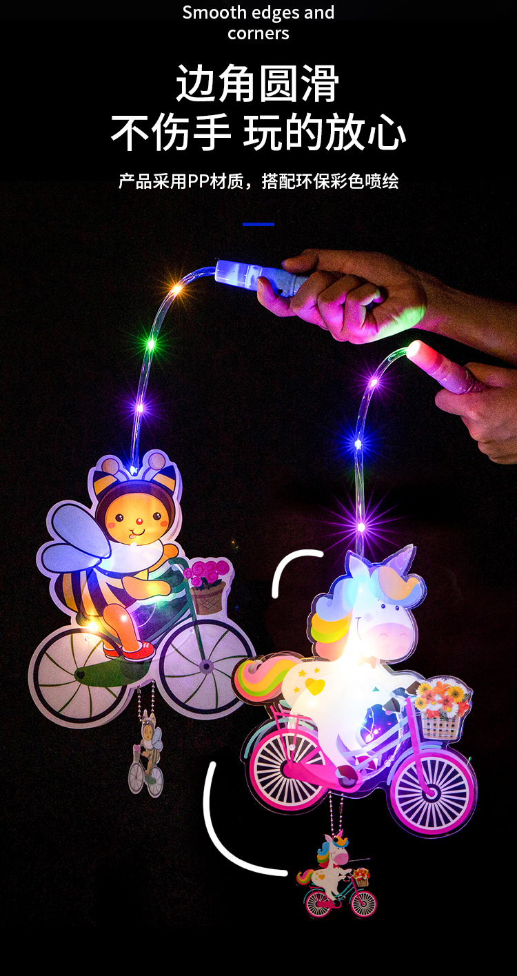 创意可转风车灯笼中秋节卡通发光兔子恐龙儿童手提小花灯玩具批发