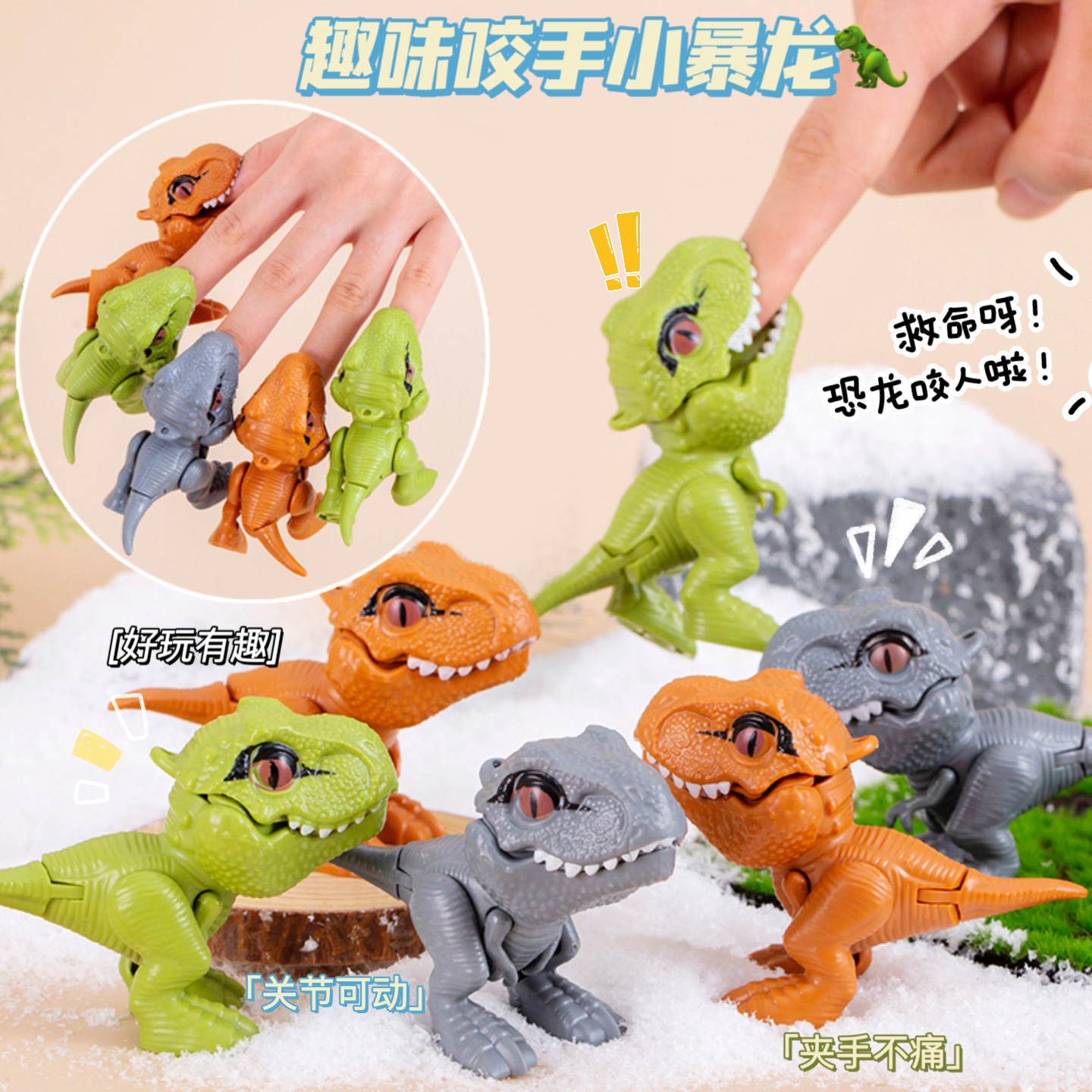 咬手指恐龙玩具抖音网红同款儿童咬手小恐龙玩具模型跨境新品