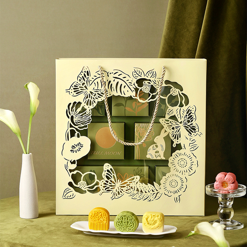 2024新款月饼盒高级感8粒镂空中秋礼盒流心冰皮蛋黄酥创意包装盒