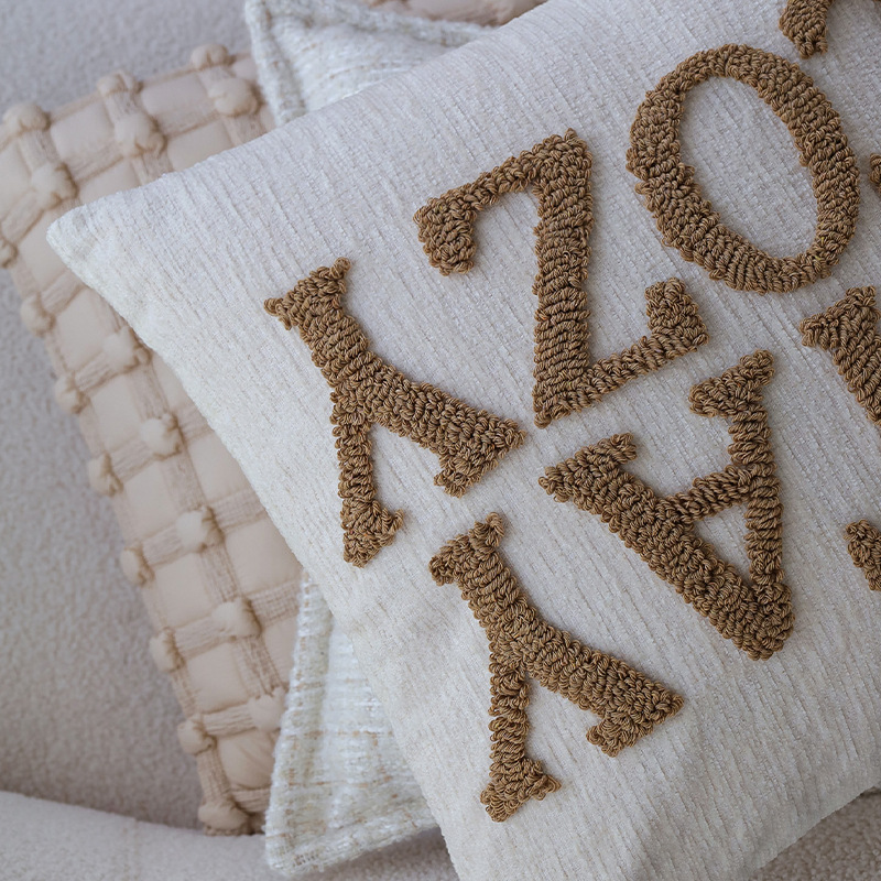 北欧ins风抱枕套雪尼尔圈绒抱枕客厅沙发字母靠枕卧室靠背批发