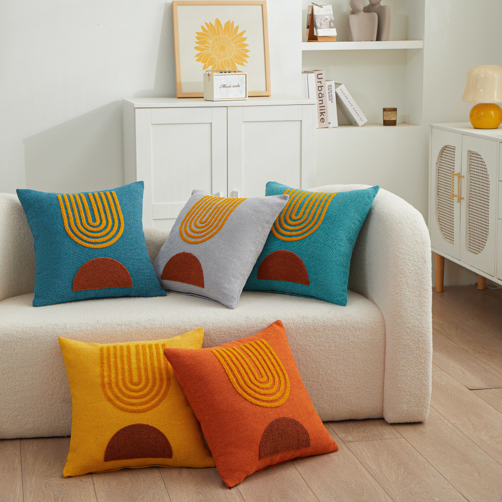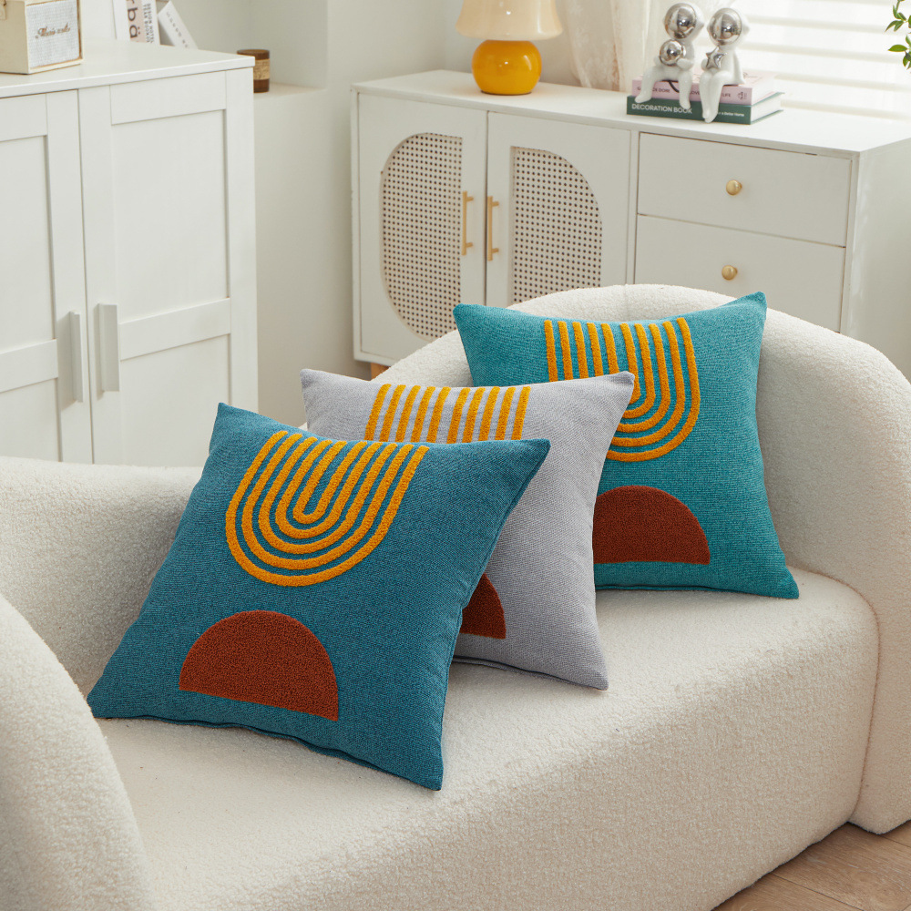 厂家直销抽象简约刺绣抱枕居家沙发装饰靠垫几何抱枕套餐垫座椅靠