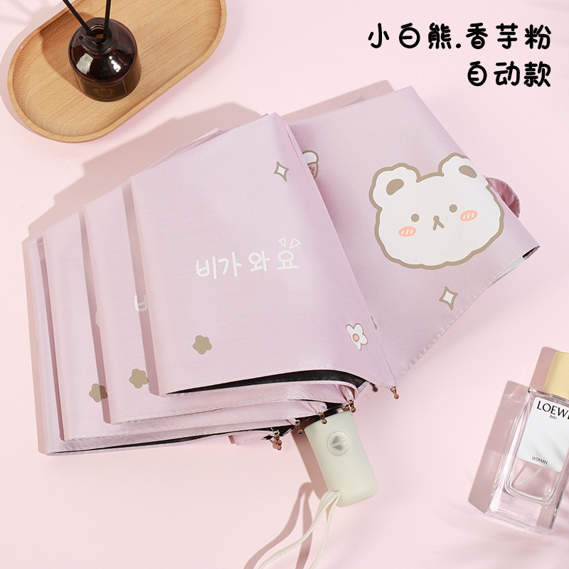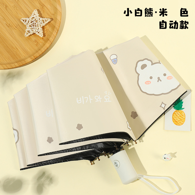 卡通晴雨两用伞黑胶小熊图案学生伞防晒防紫外线遮阳伞全自动折叠