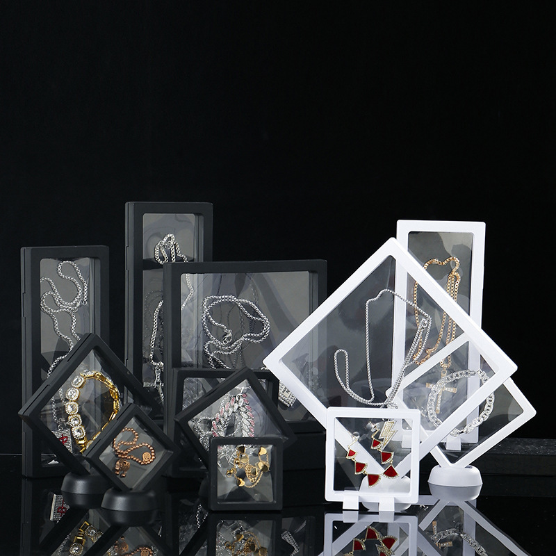 透明首饰包装盒防氧化pe膜悬浮盒多规格首饰品展示盒包装悬浮PE盒
