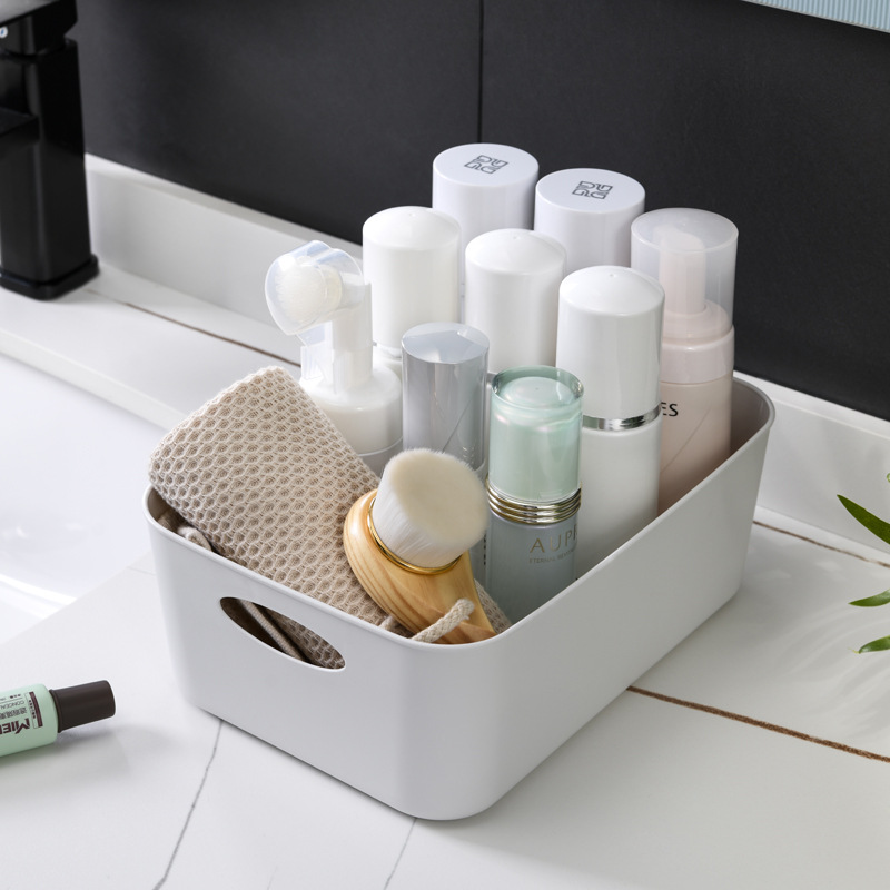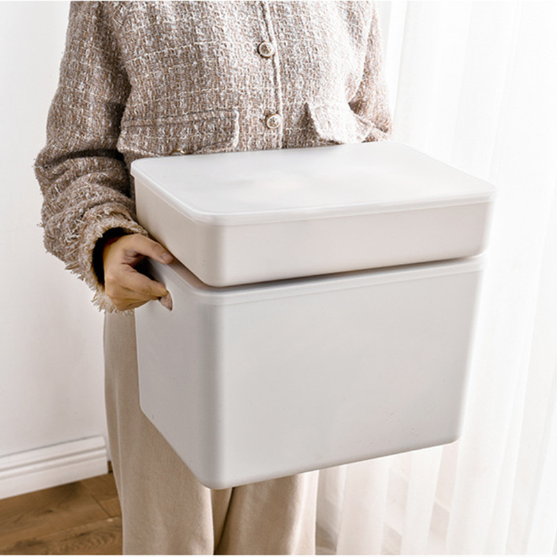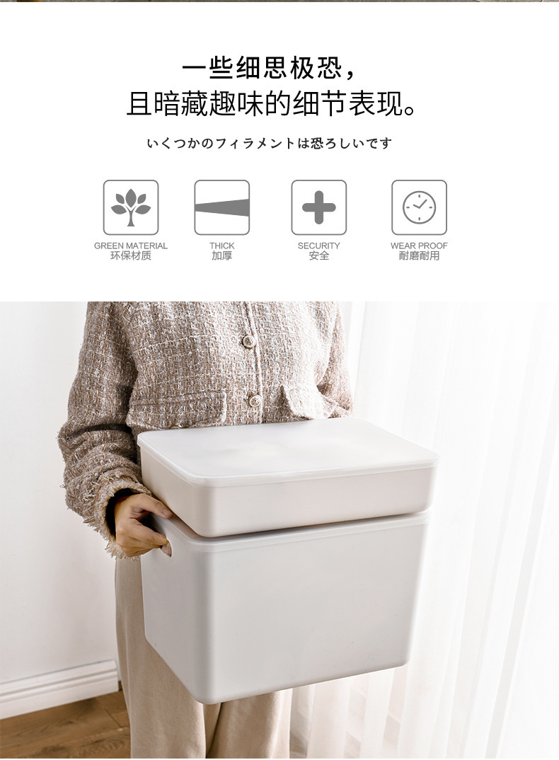 日式桌面收纳盒带盖收纳箱塑料收纳筐防尘书箱整理盒子零食储物篮