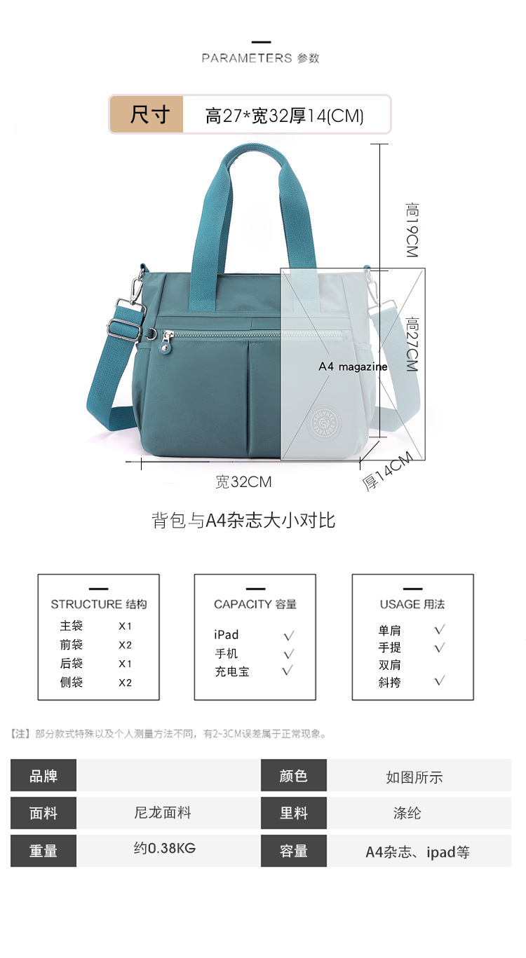 新款手提包潮搭时尚轻盈尼龙包简约单肩斜挎包