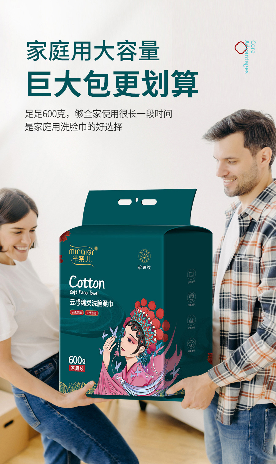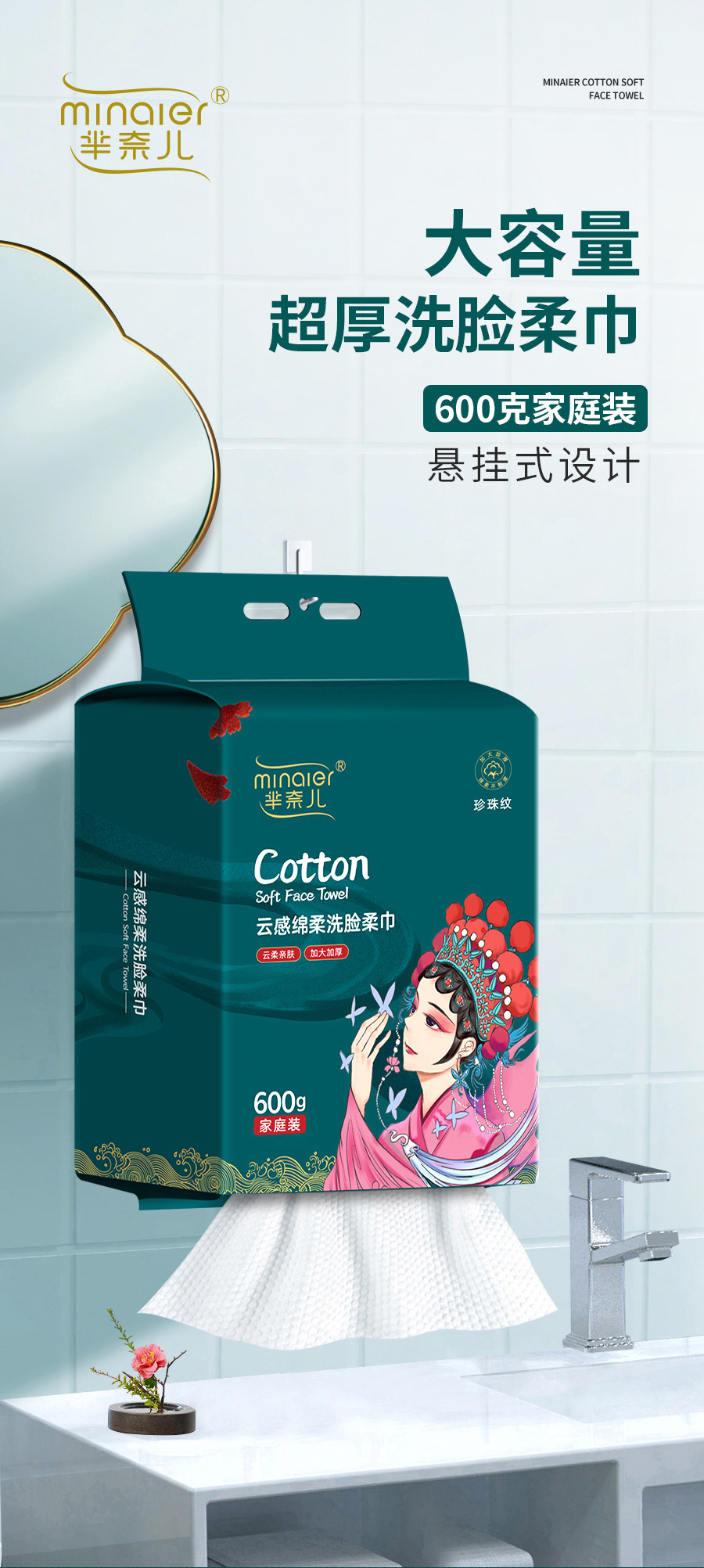 芈奈儿600g悬挂式洗脸巾抽取式一次性洗脸巾加厚棉柔巾洗面巾批发
