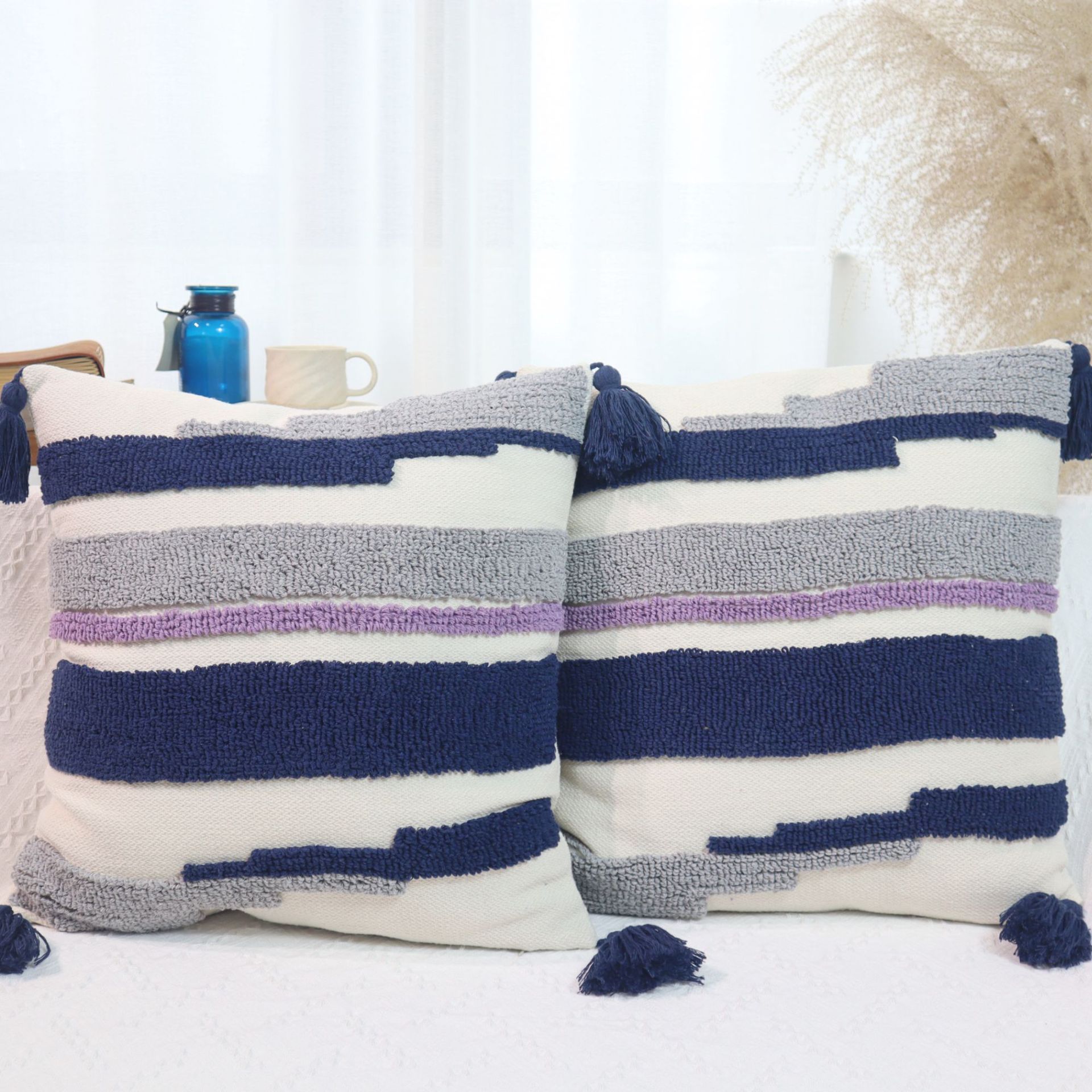 北欧ins风简约波浪线条流苏蓝色系客厅沙发卧室抱枕靠垫
