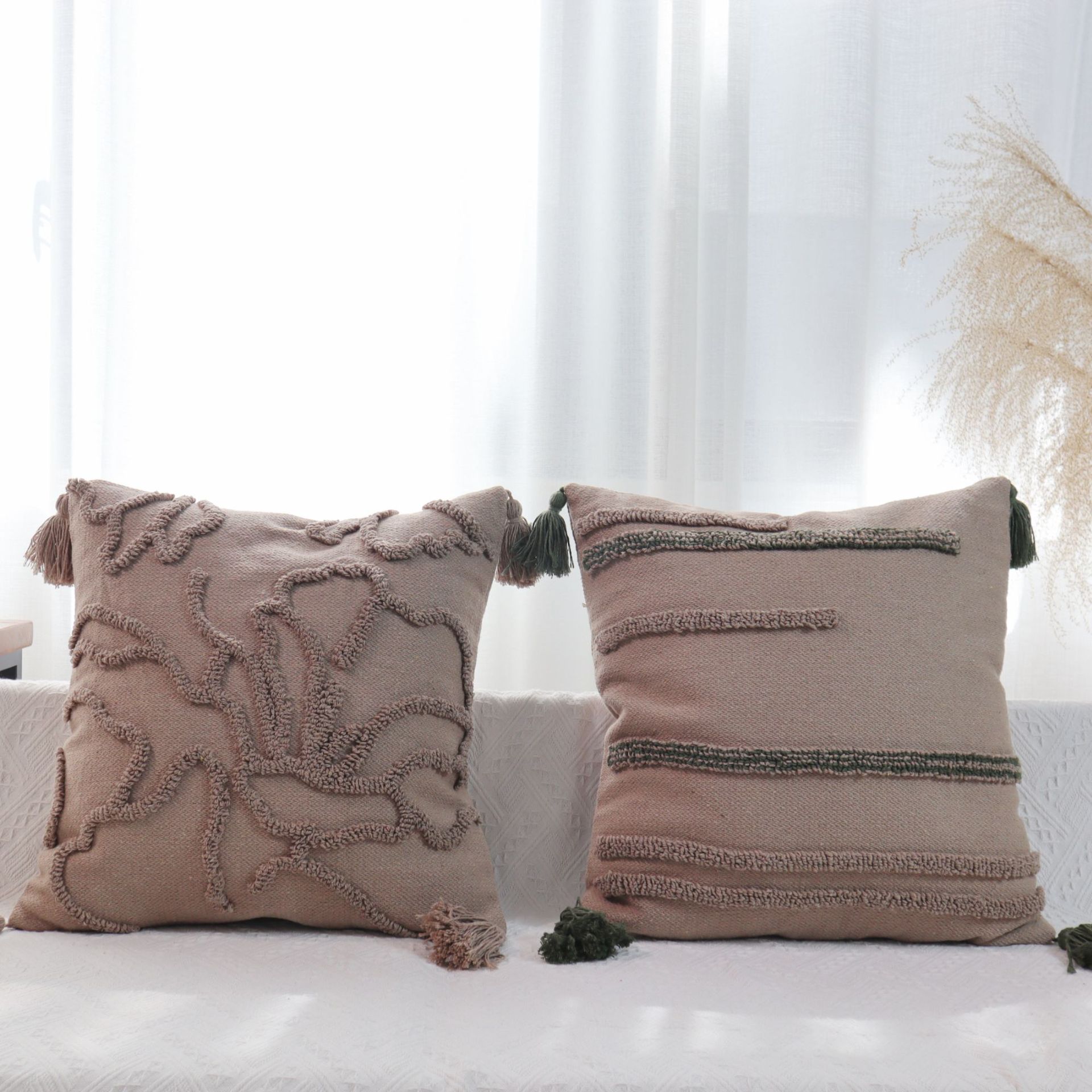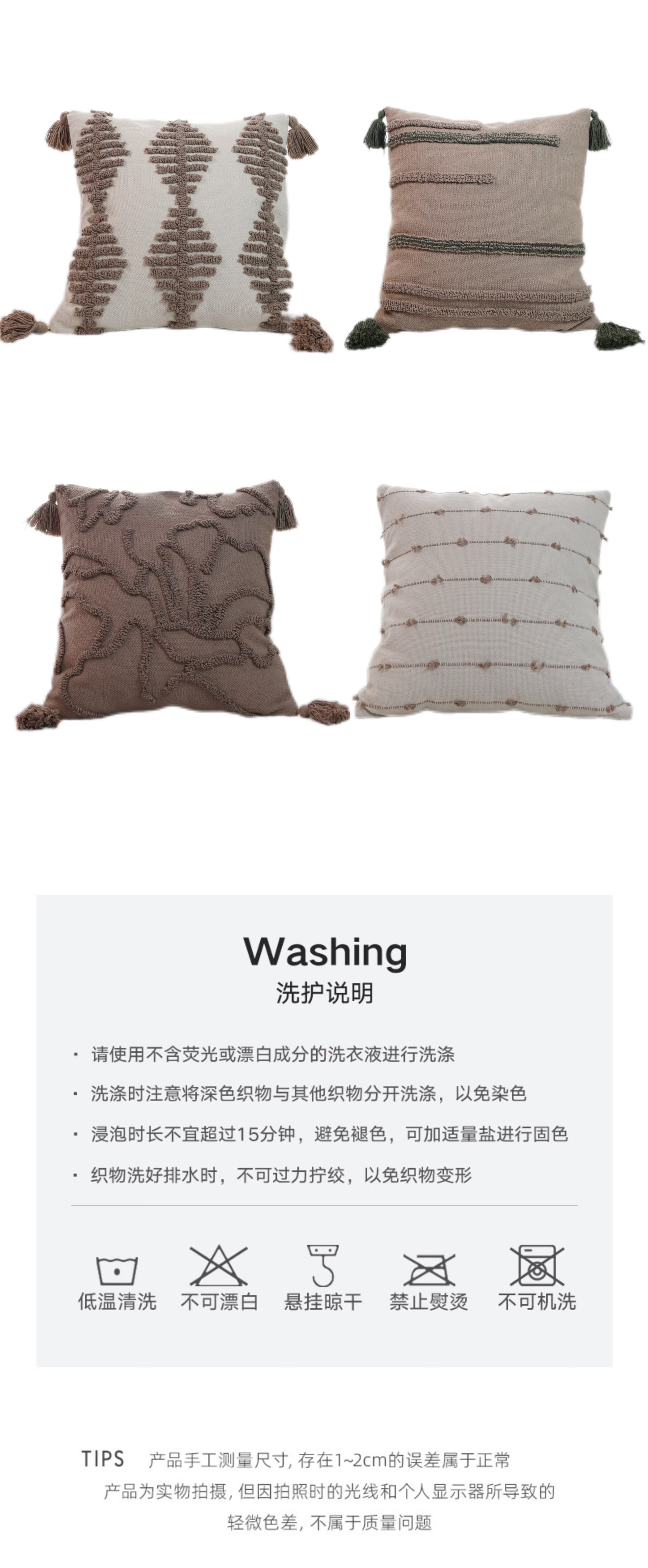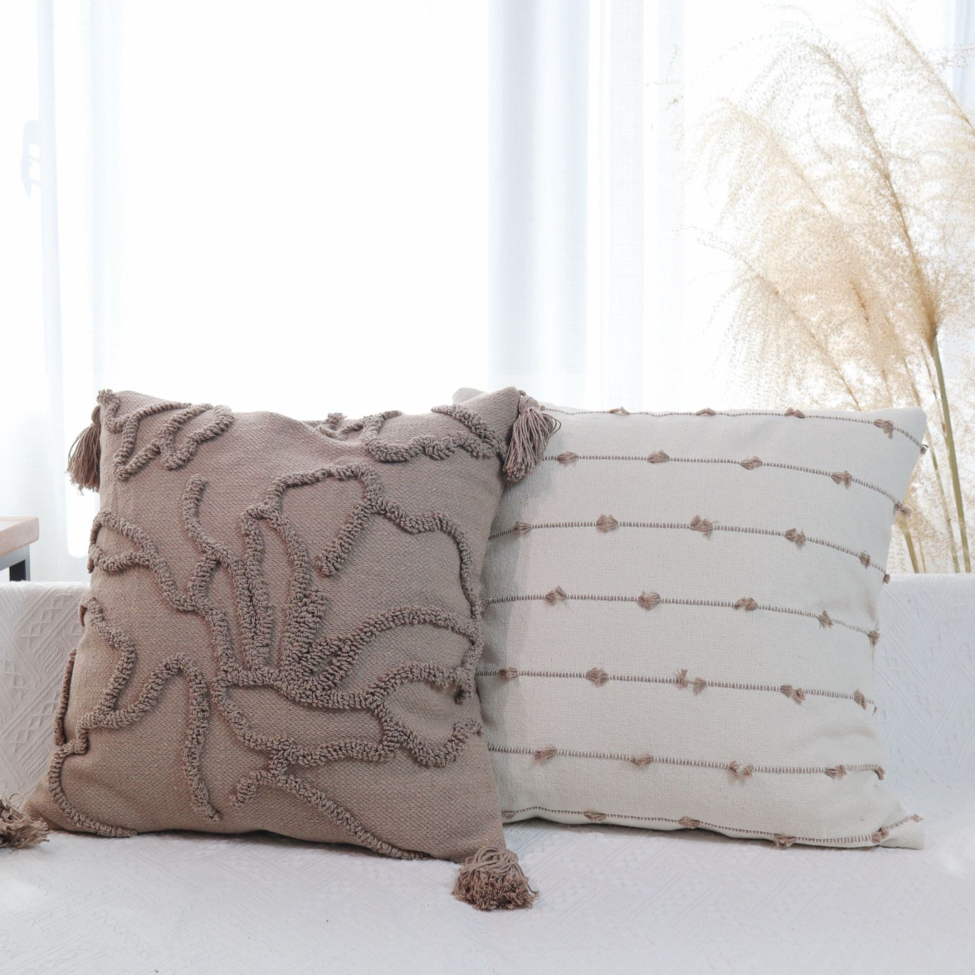 北欧ins侘寂风美拉德色系棉线剪花圈绒簇绒客厅沙发卧室抱枕靠垫