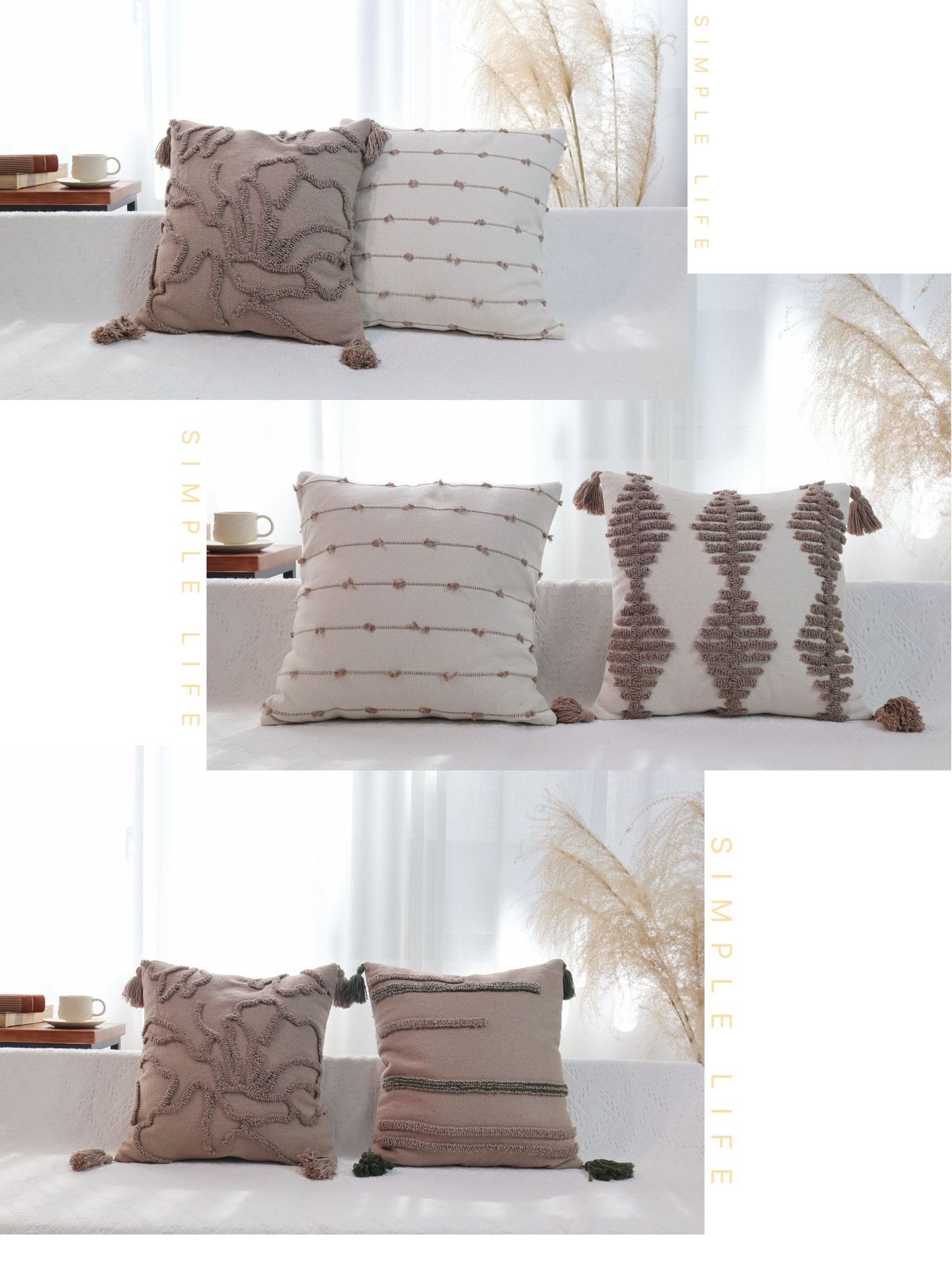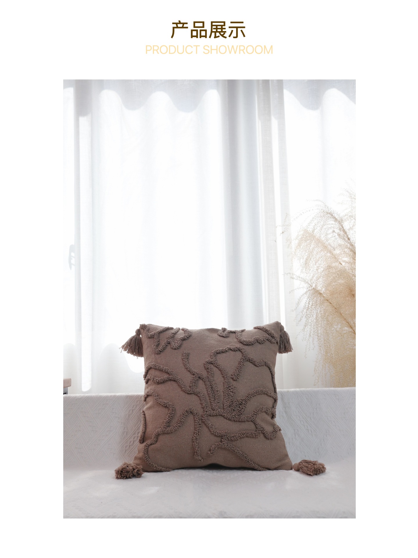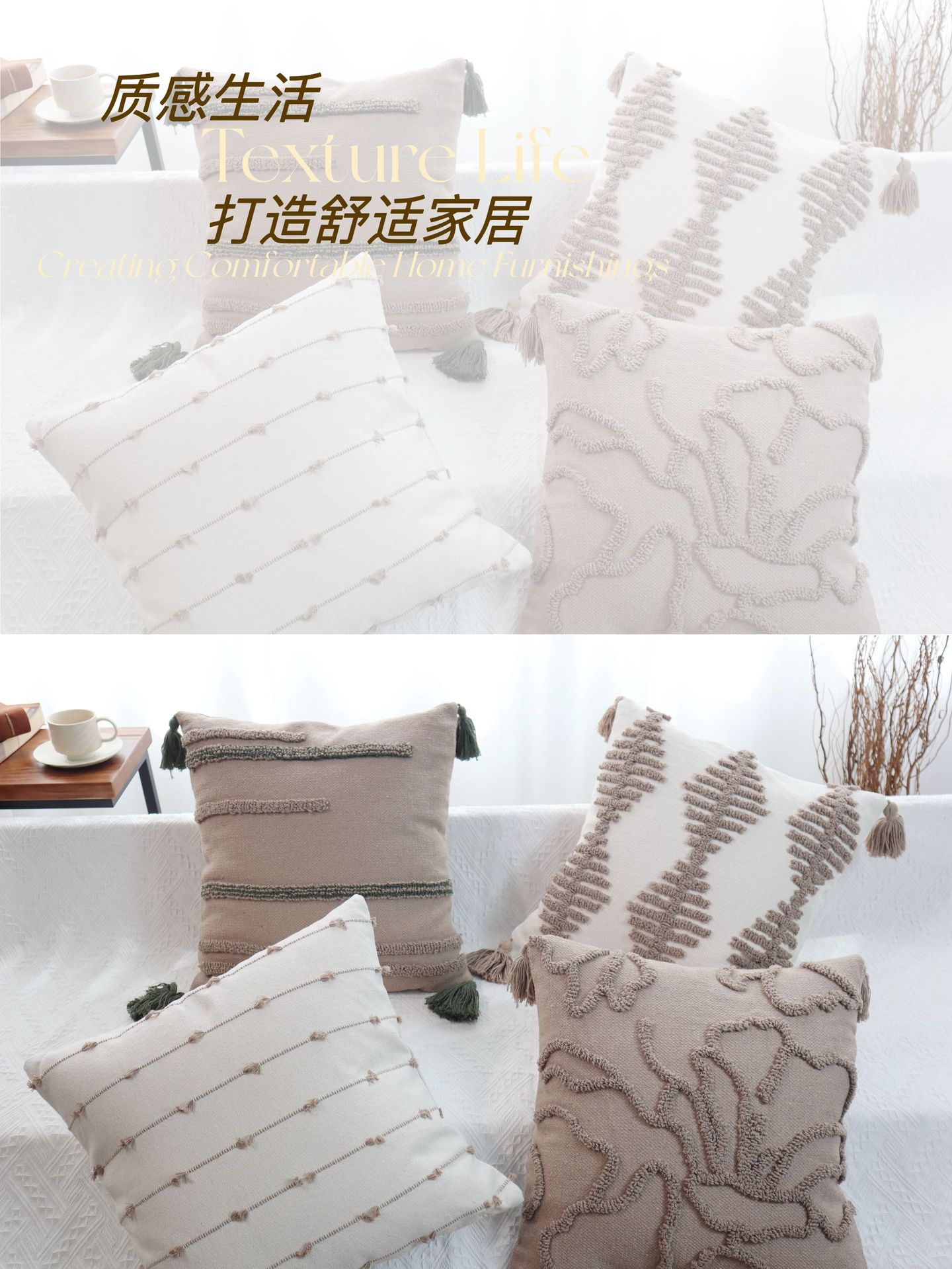 北欧ins侘寂风美拉德色系棉线剪花圈绒簇绒客厅沙发卧室抱枕靠垫