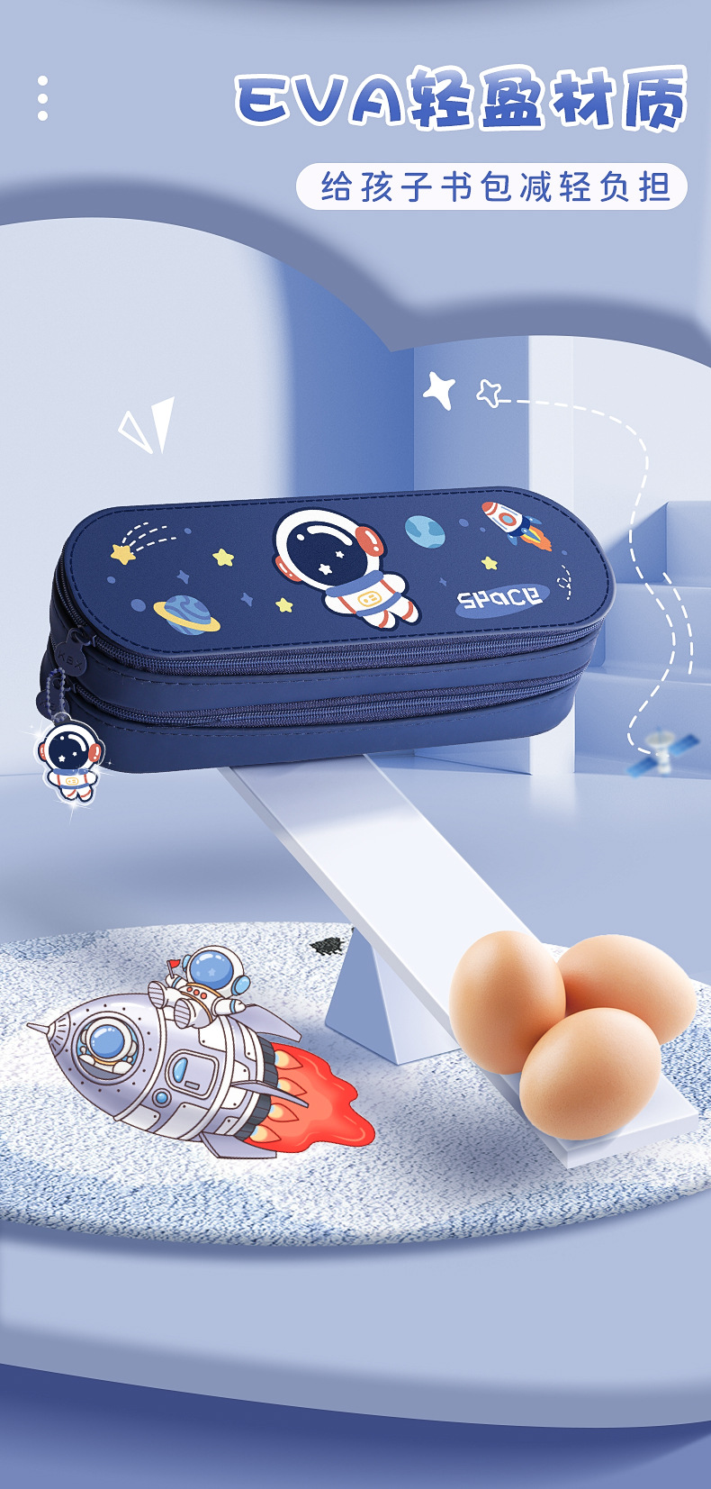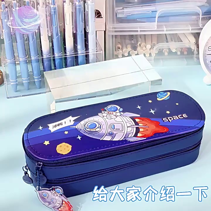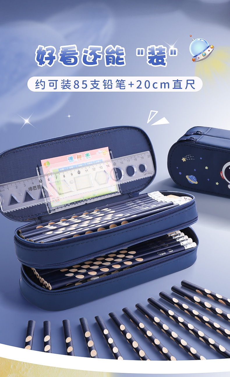 文具盒可爱笔袋笔盒宇航员简约双层学生卡通男款男孩高颜值大容量