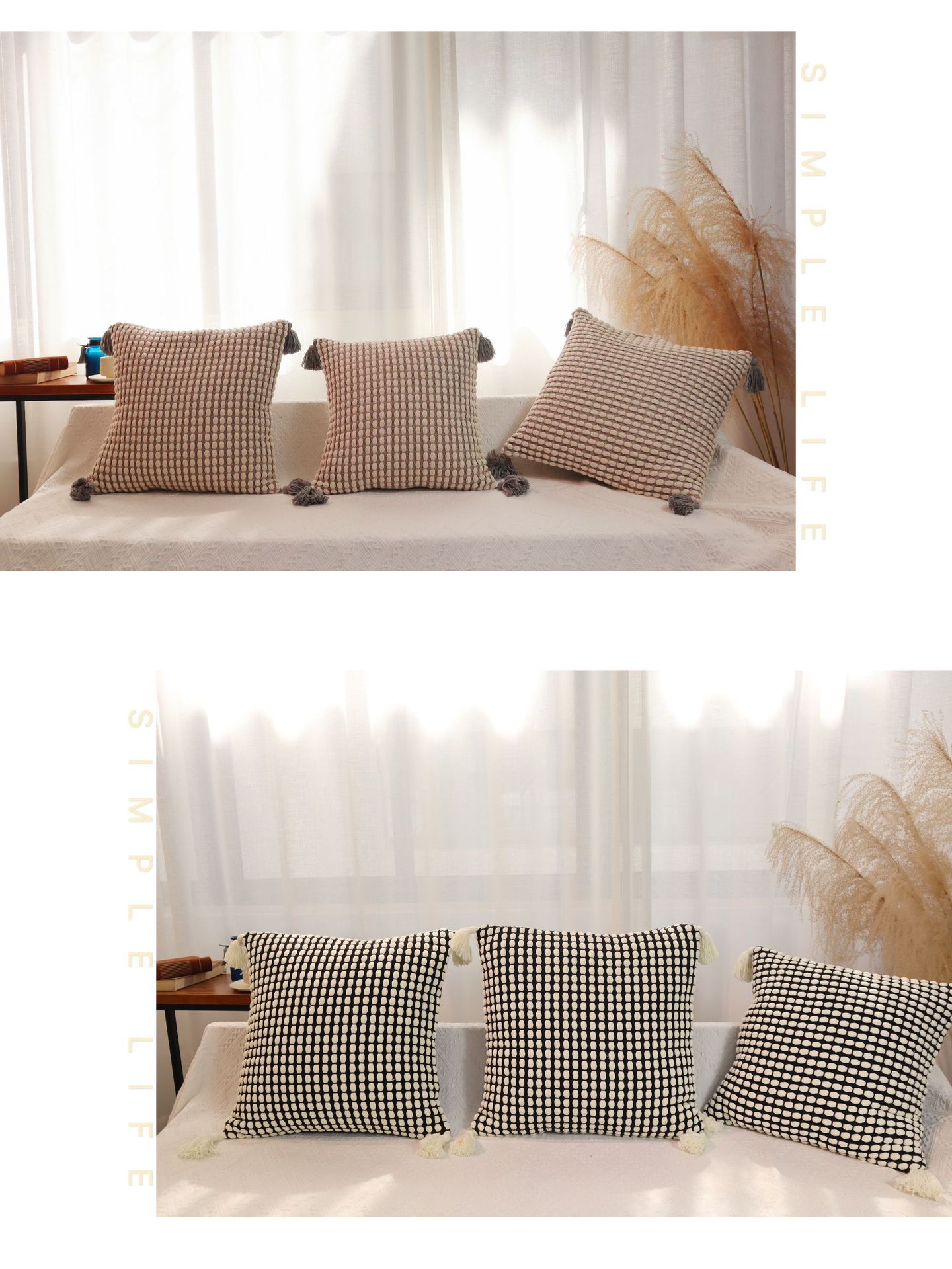 北欧ins风现代简约棉线编织流苏客厅沙发卧室抱枕靠垫腰靠