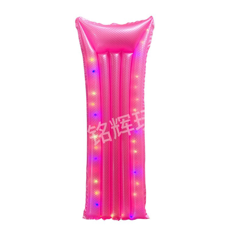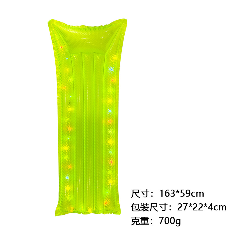 跨境水上泳池漂浮床玩具PVC环保加厚纯色简约带灯发光充气浮排