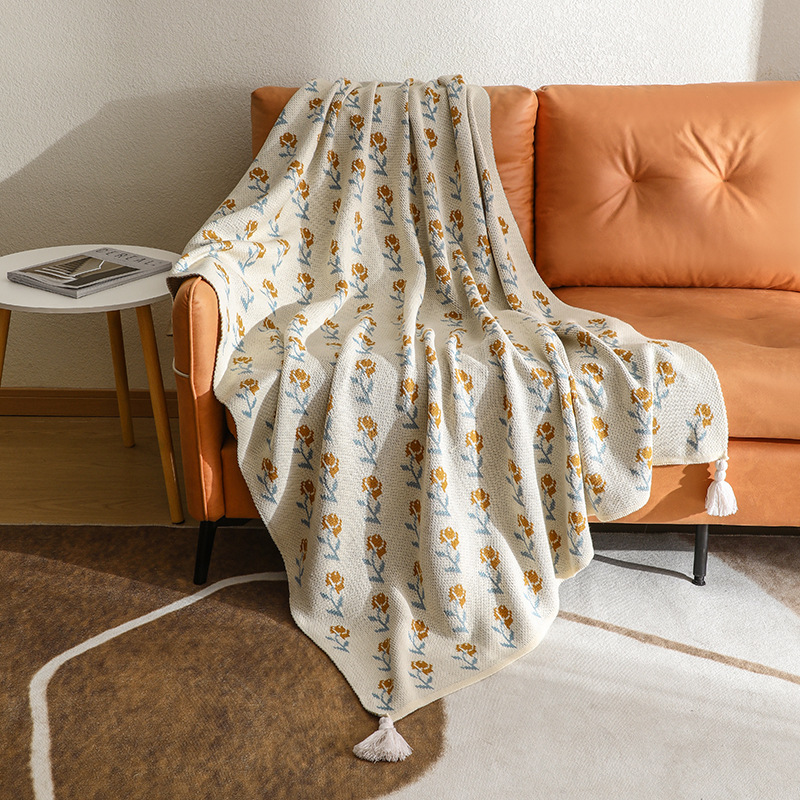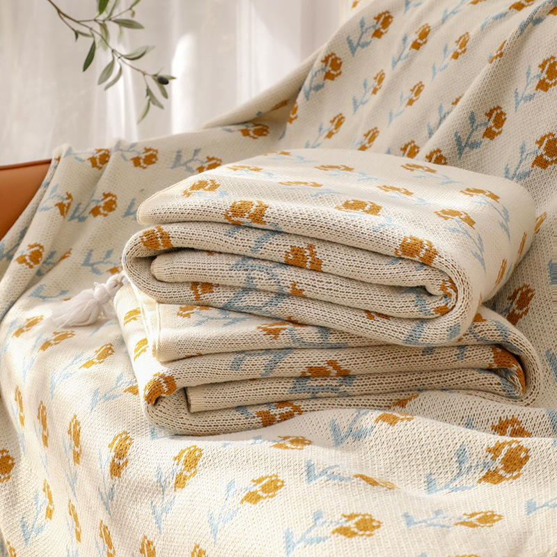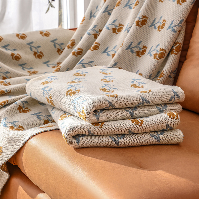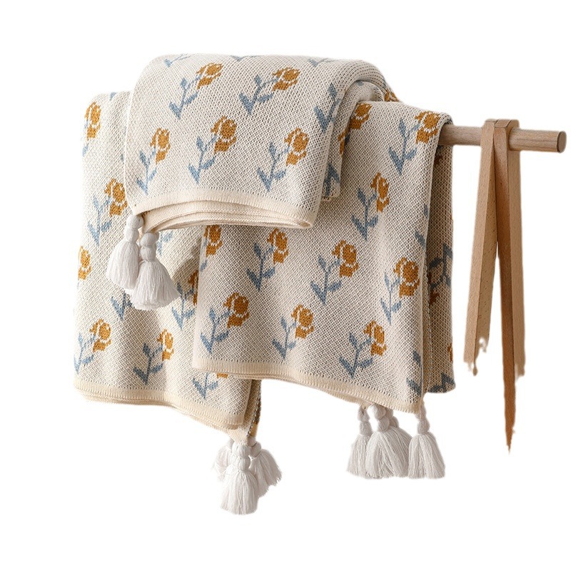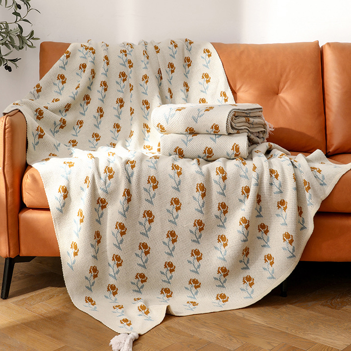 新款花朵针织盖毯床搭毯ins风披肩搭巾民宿酒店床尾毯礼品毯盖毯