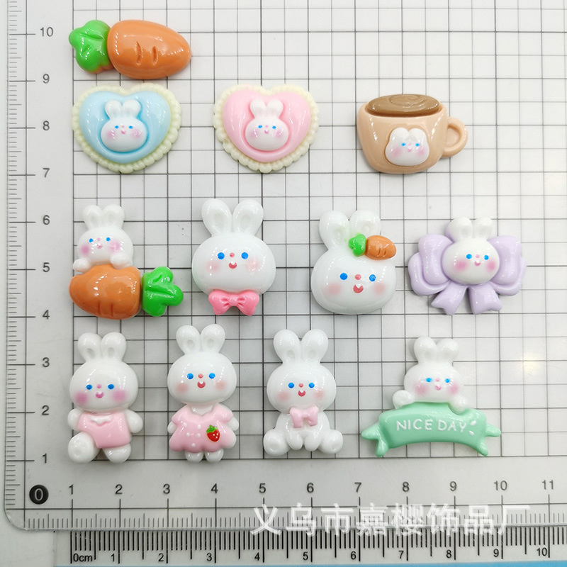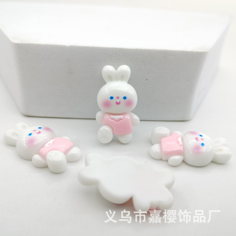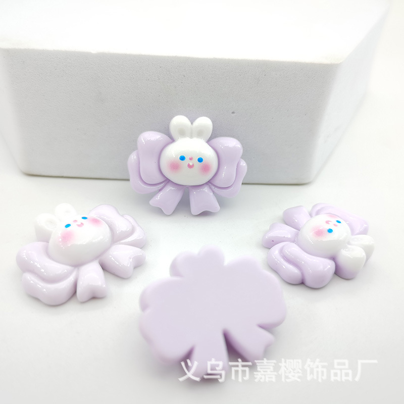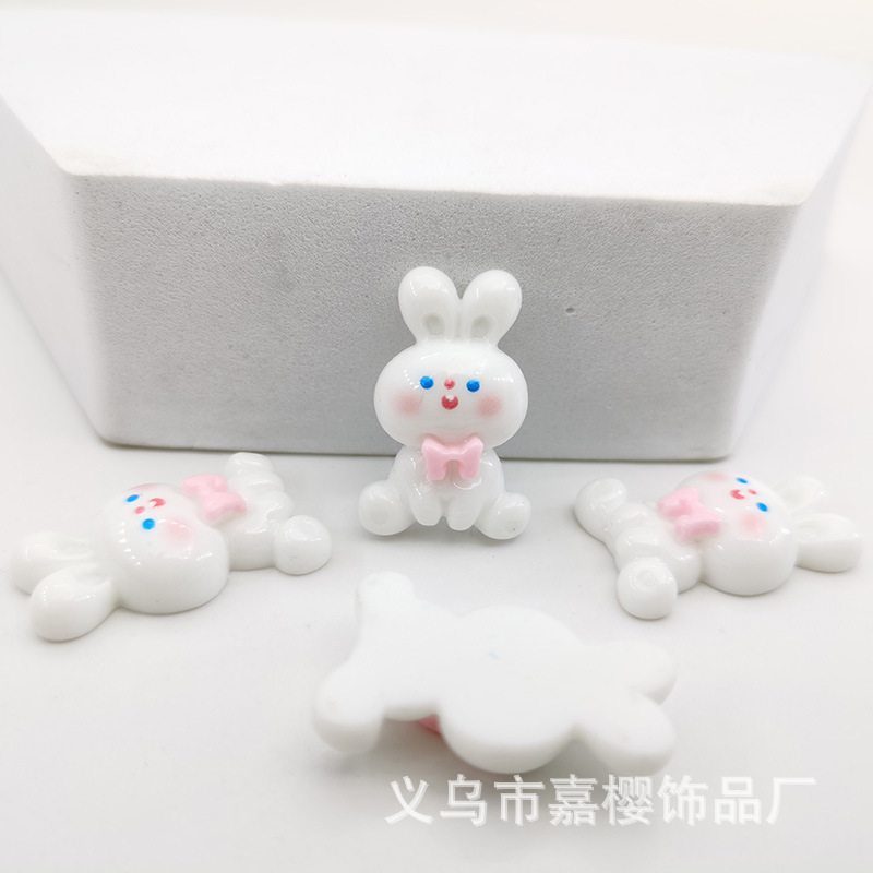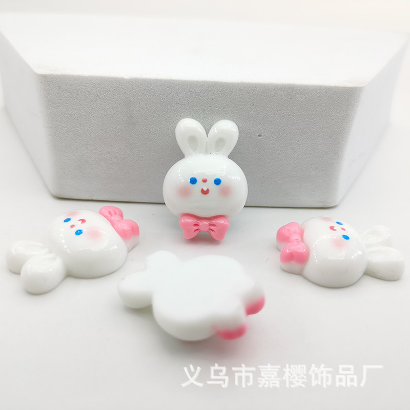卡通亮面领结兔粉色兔萝卜diy发夹头绳贴片手机壳奶油胶配件材料