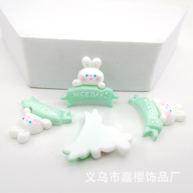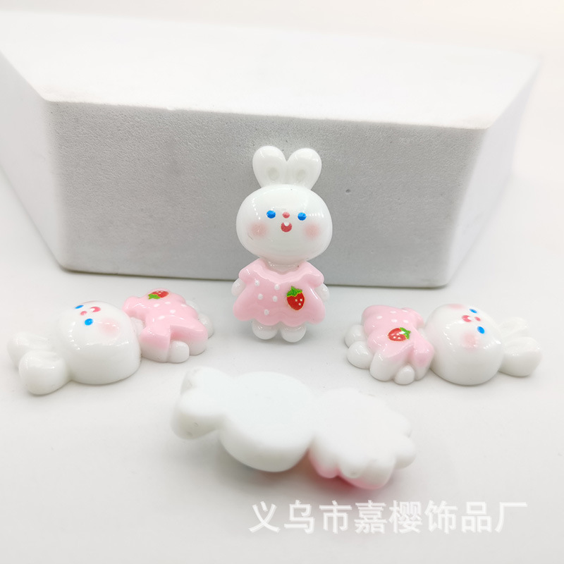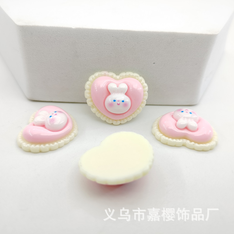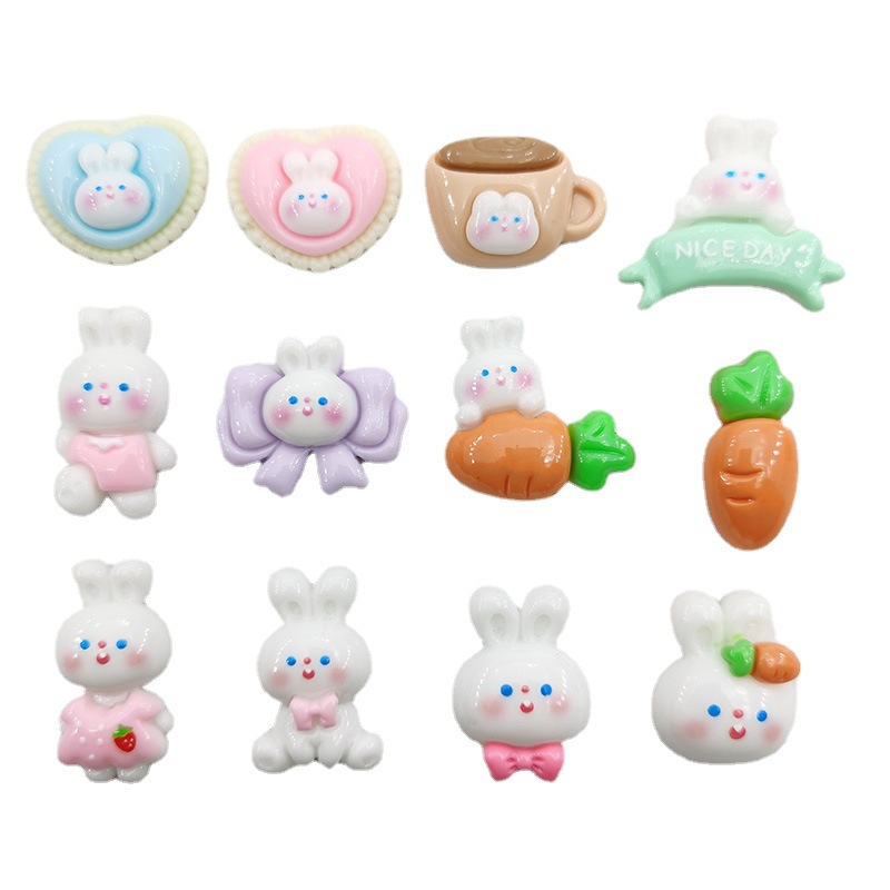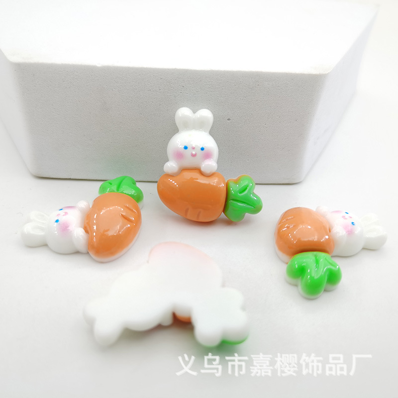 卡通亮面领结兔粉色兔萝卜diy发夹头绳贴片手机壳奶油胶配件材料