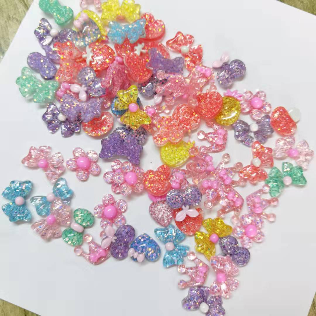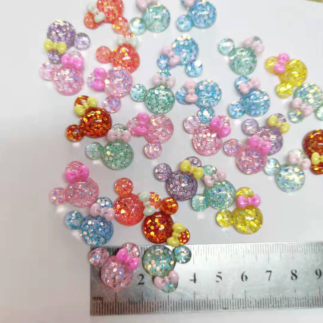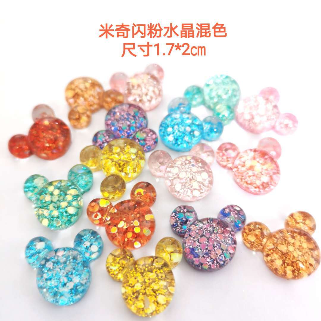 透明闪粉亮粉七彩色米奇贴片 diy儿童女童发饰品发夹皮筋配件材料