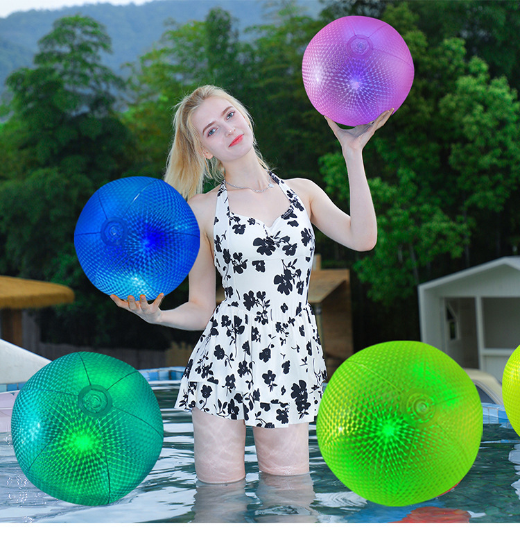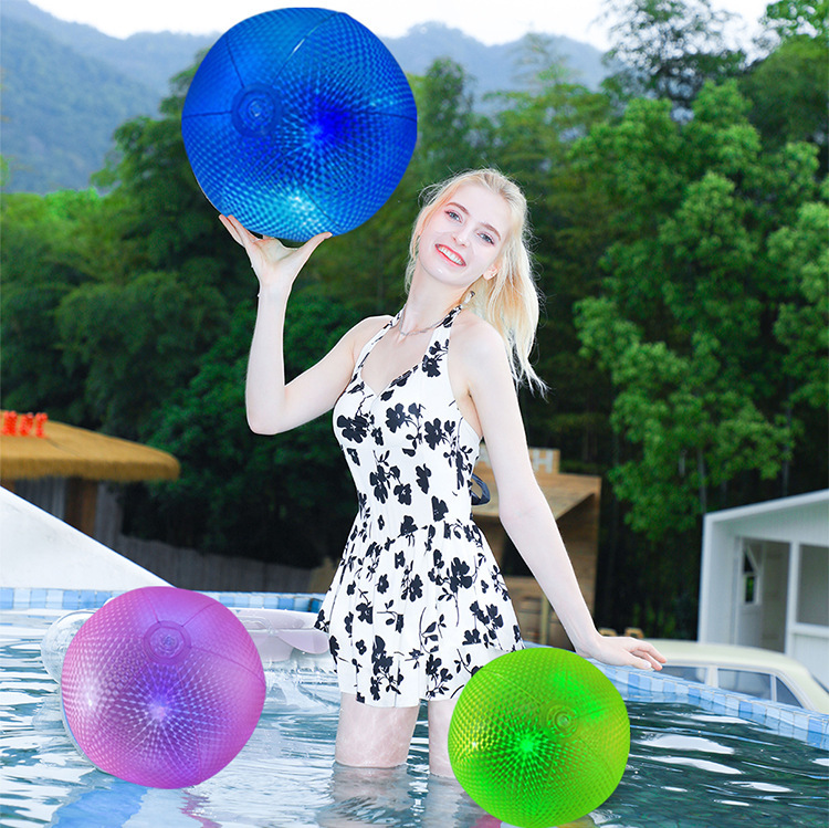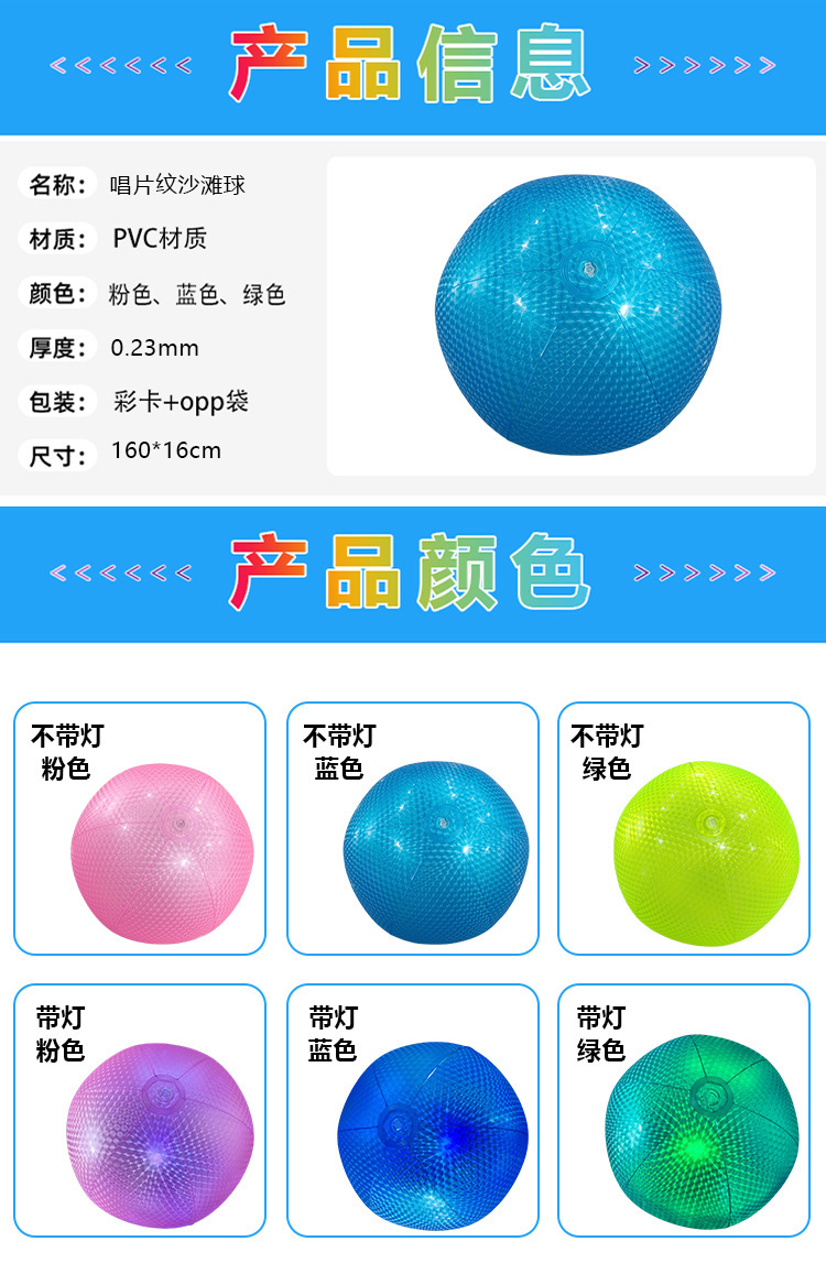 跨境新款PVC彩色带灯沙滩球唱片纹发光球泳池派对道具戏水玩具