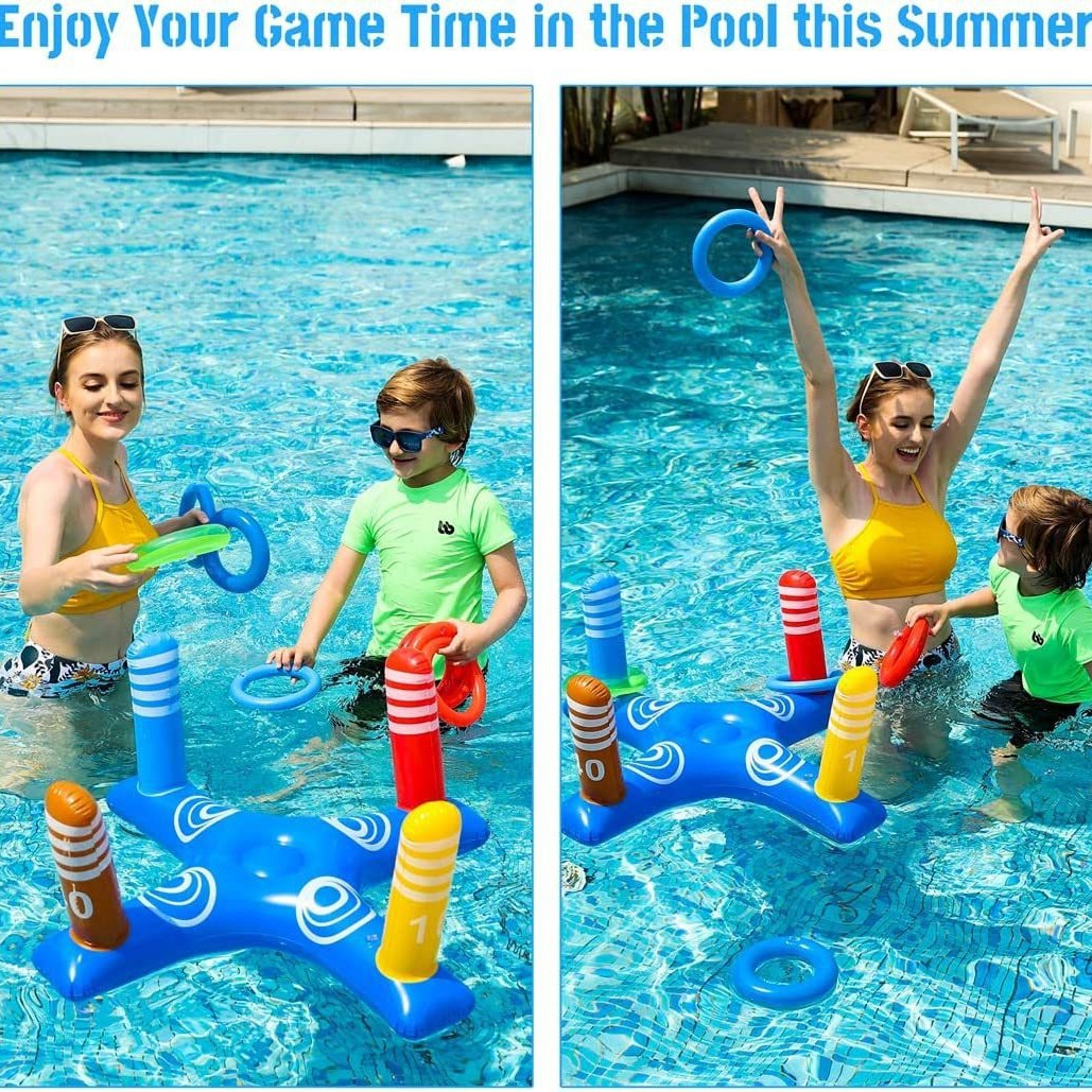 厂家跨境pvc充气蓝色十字架套圈玩具儿童投掷套圈游戏玩具