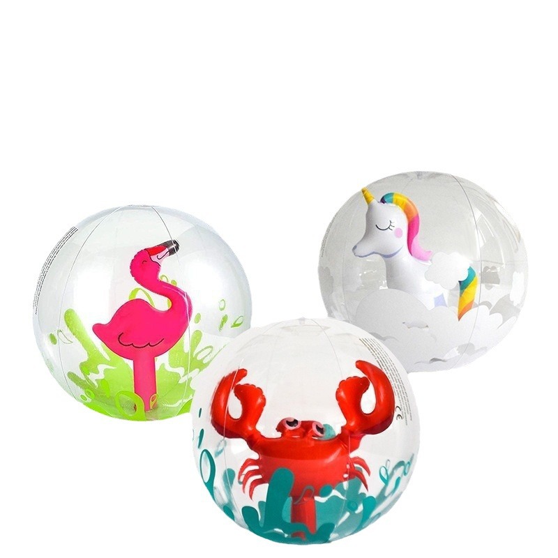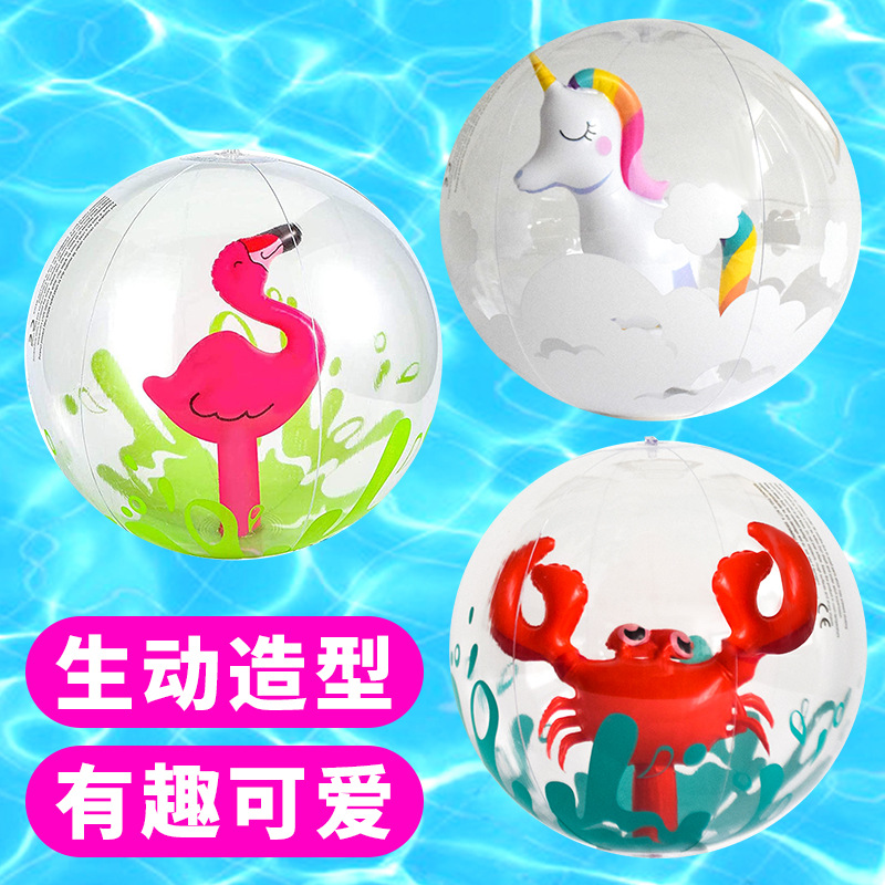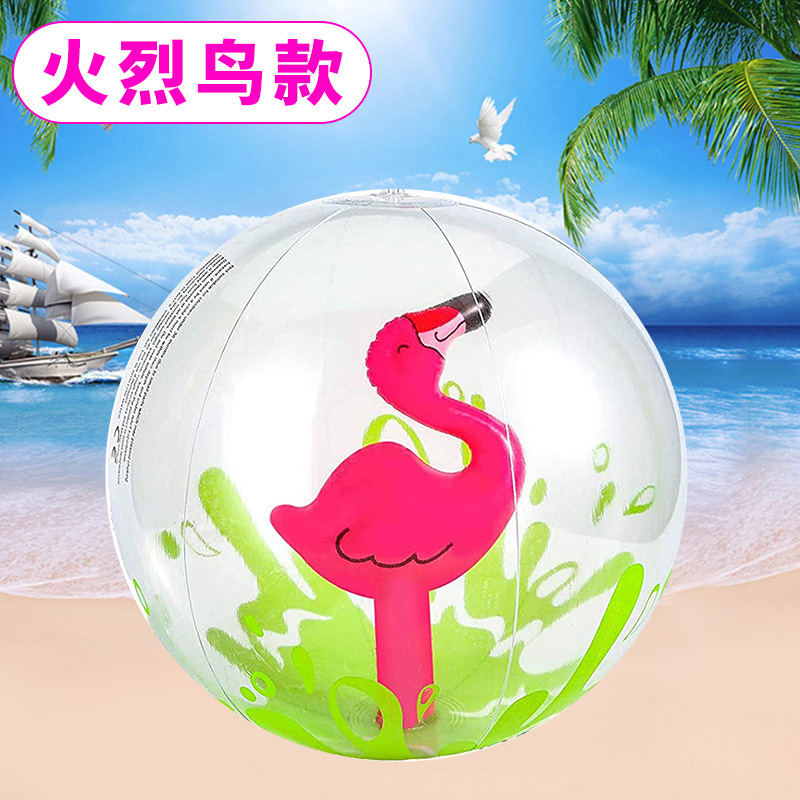 厂家充气沙滩球跨境3D球中球加厚PVC卡通独角兽火烈鸟玩具球