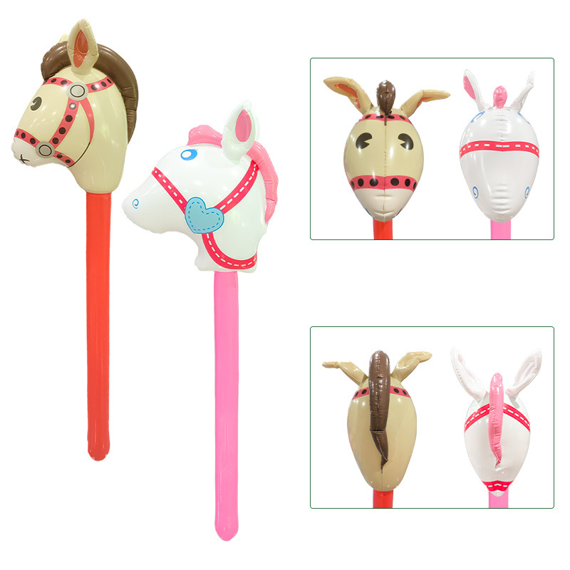 跨境舞台表演道具环保PVC儿童游戏动物头玩具加厚粉色充气马头棒