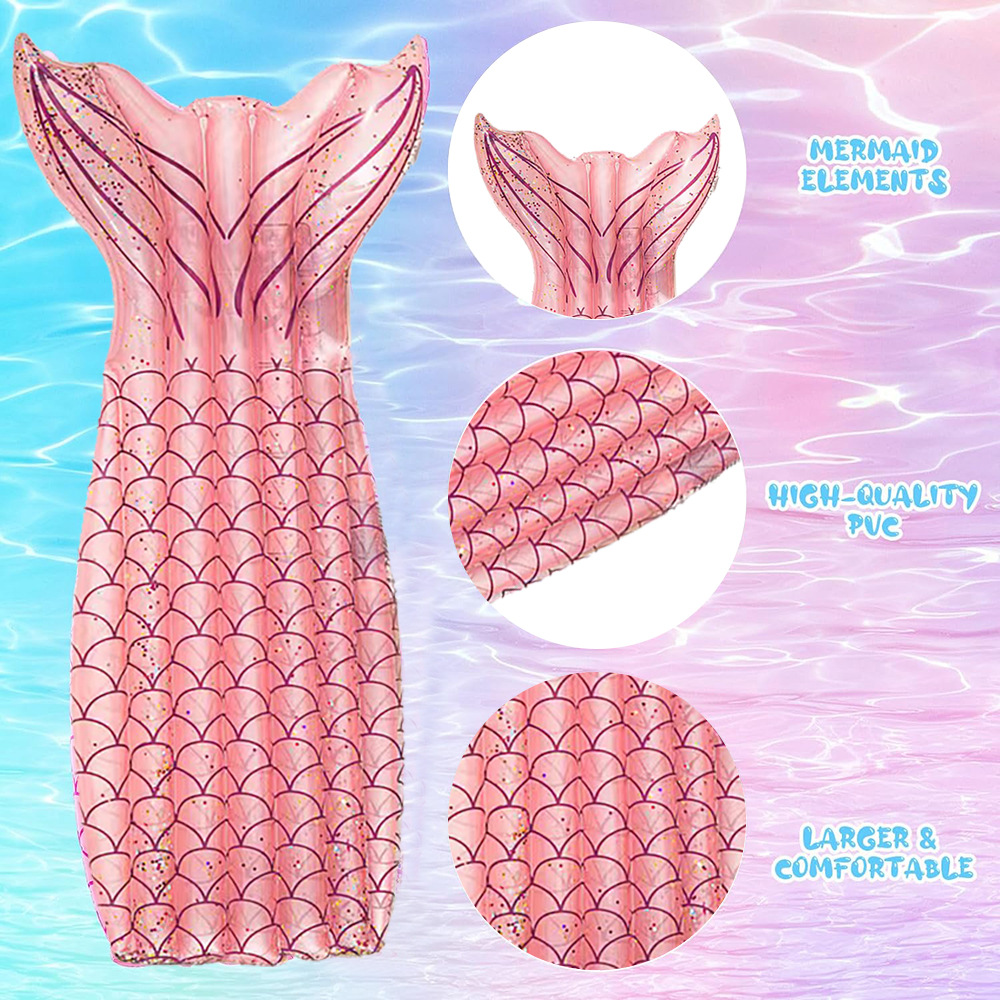 跨境现货亮片美人鱼充气浮排鱼尾巴成人水上充气浮床坐骑玩具