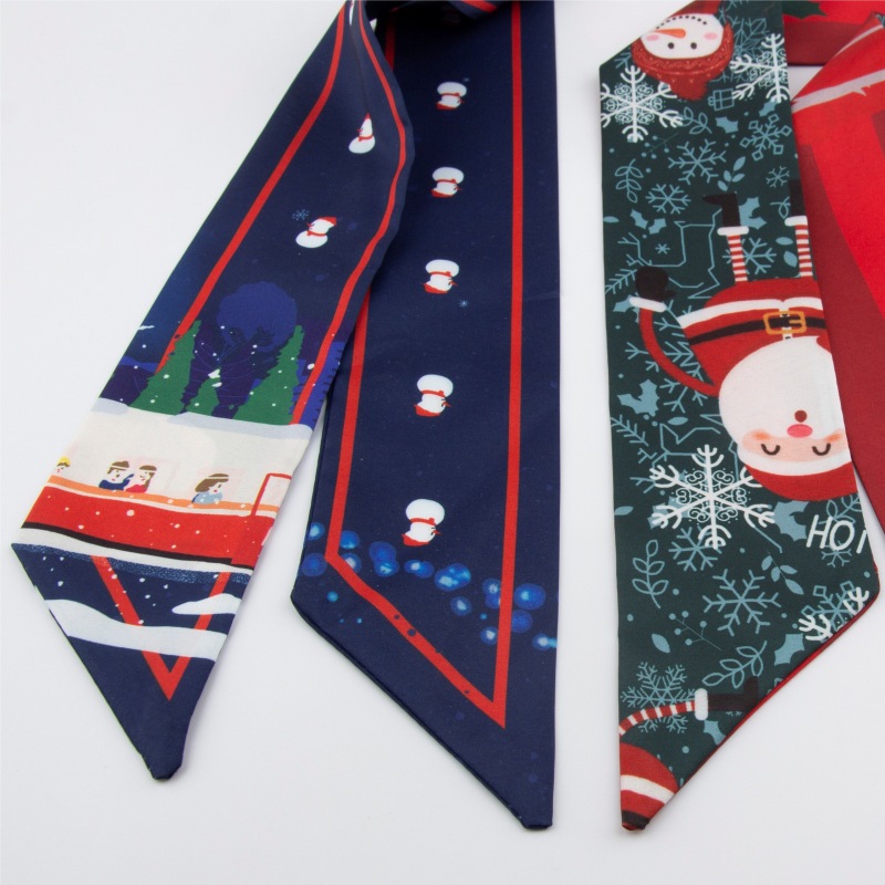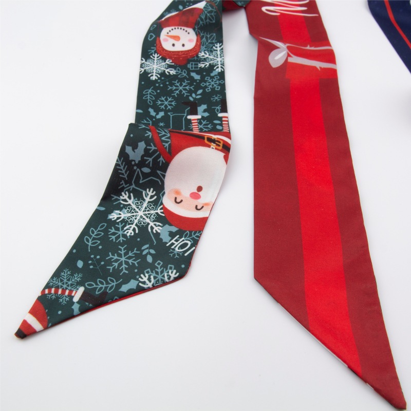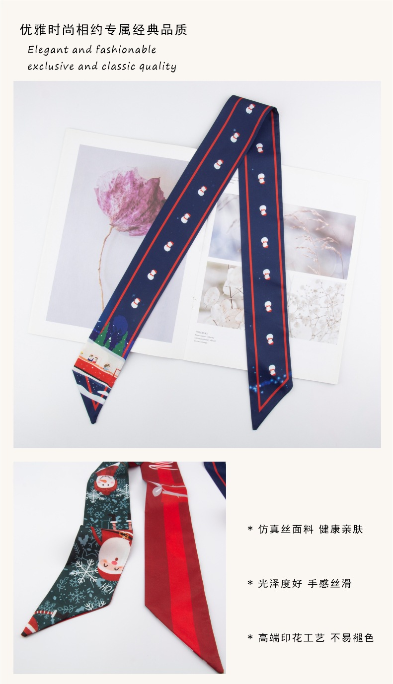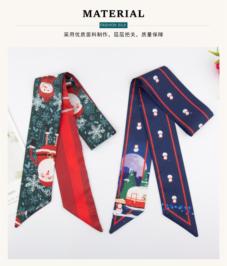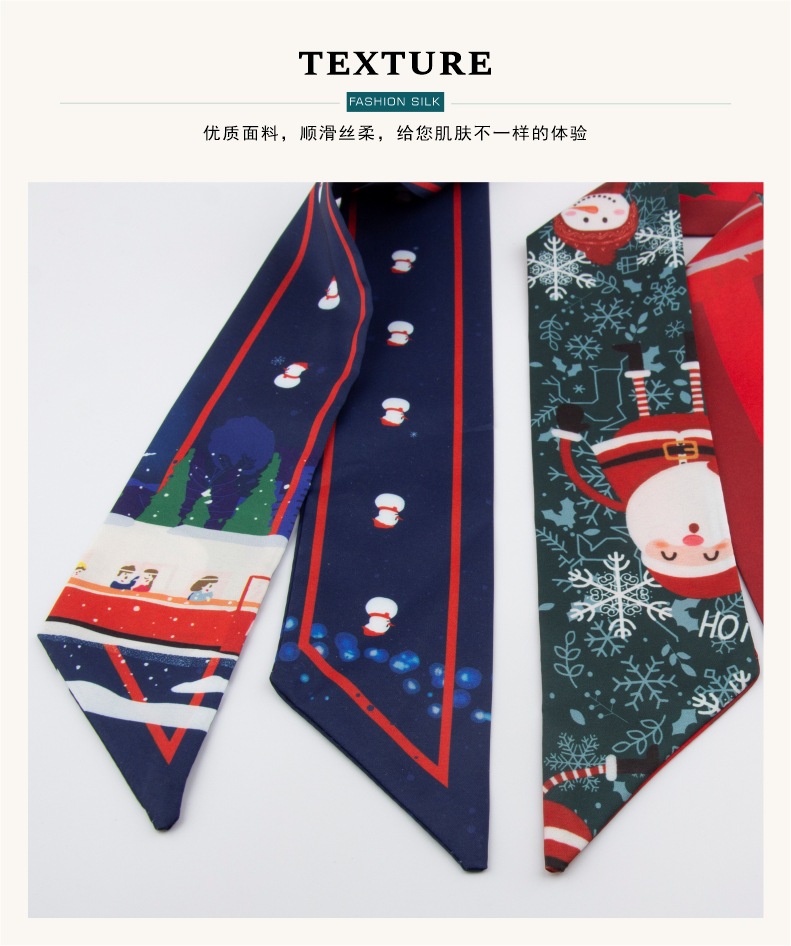 新款雪人圣诞新年丝巾发带小长条百搭飘带领巾洋气氛围感装饰发饰