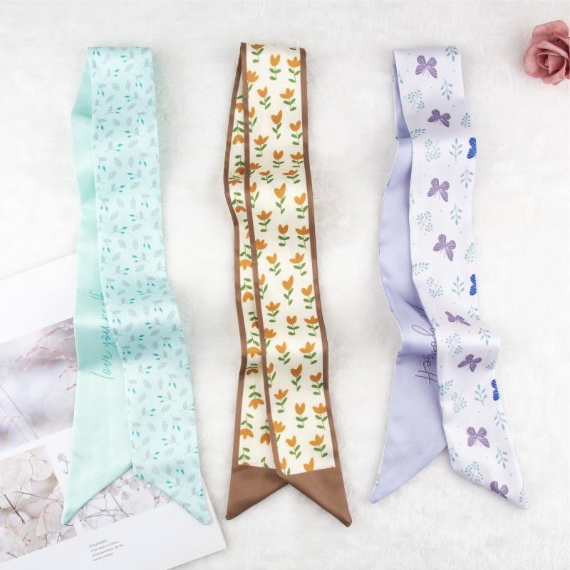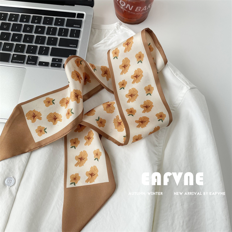 卡其色系温柔风韩版小丝巾女 ins扎发绑发编发发带绑包春夏秋领巾