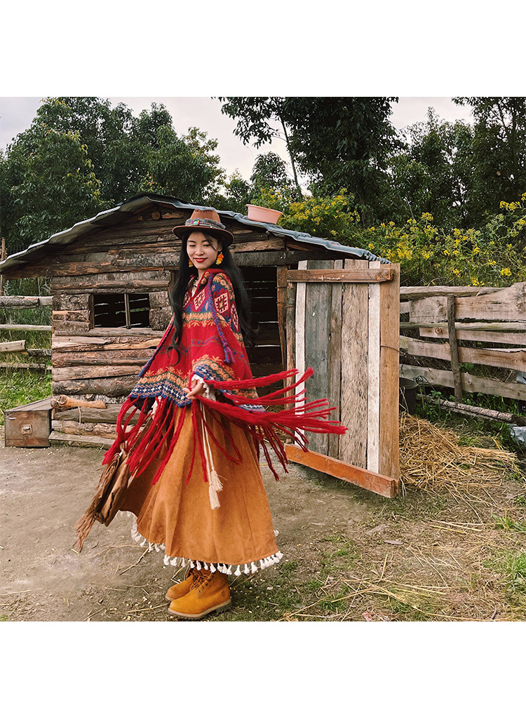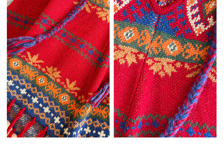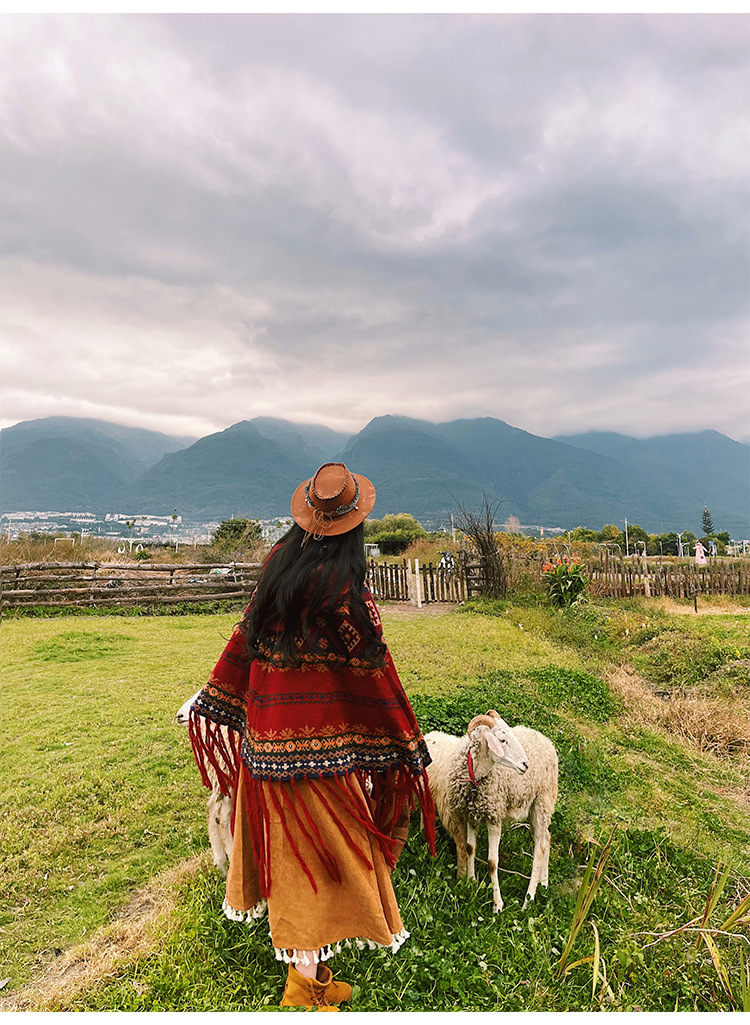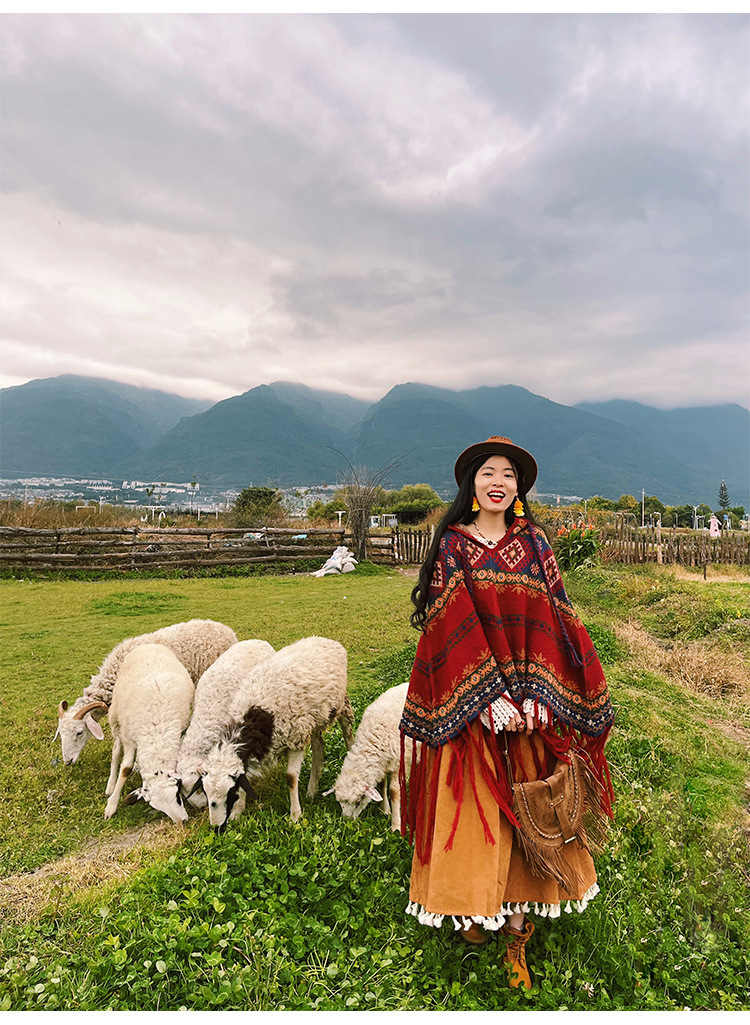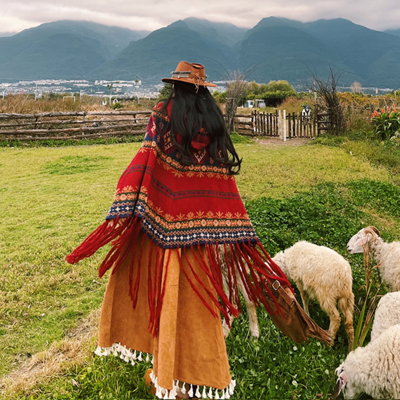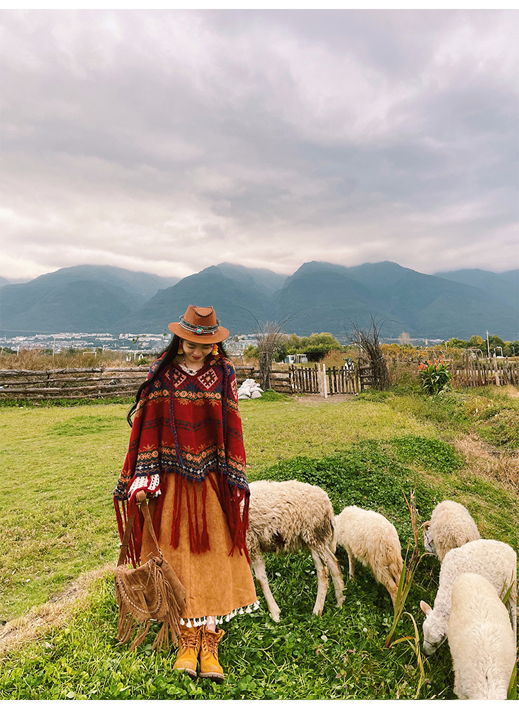 云南西藏青海湖茶卡旅游保暖围巾女复古红色民族风流苏春秋季披肩